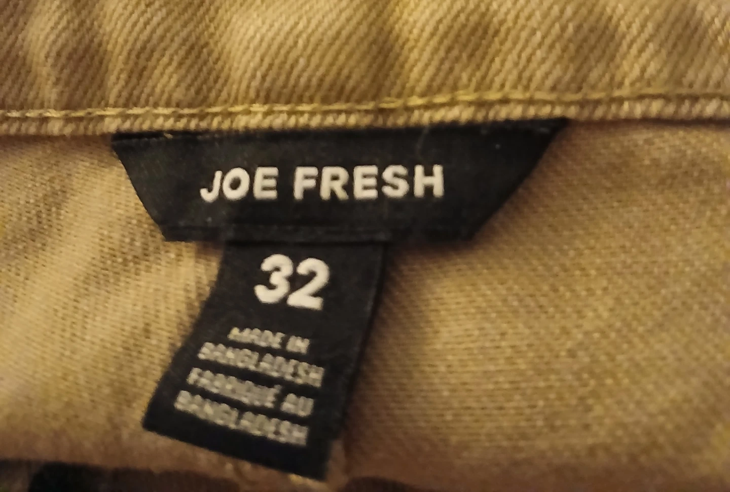 Brand new Joe Fresh khaki pants in size 32. These pants are made of a durable fabric with a comfortable fit. They feature a classic five-pocket design. A great choice for casual wear!