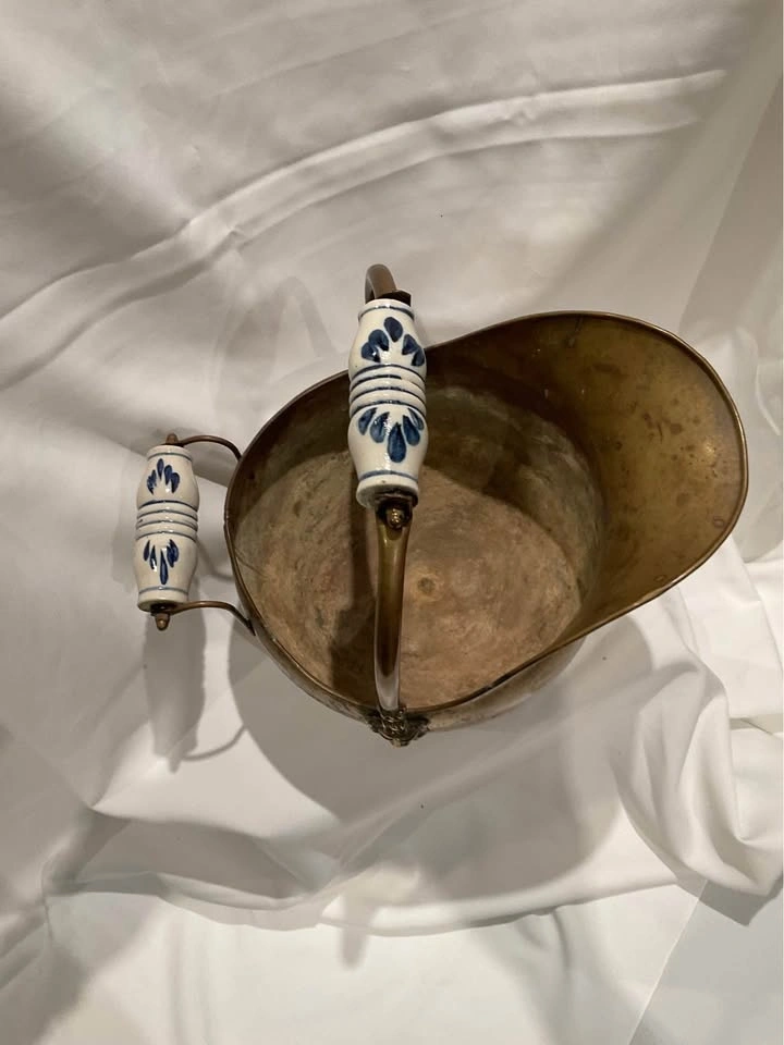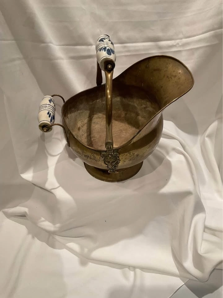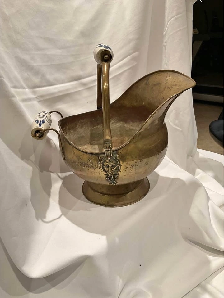 Copper & Brass Scuttle. Height with handle 14”, Base 7”. Good condition, left in original condition with natural patina - has not been cleaned. Smoke & pet free home. #266/800. Cash Only / Richmond Hill / Bathurst & King Rd.