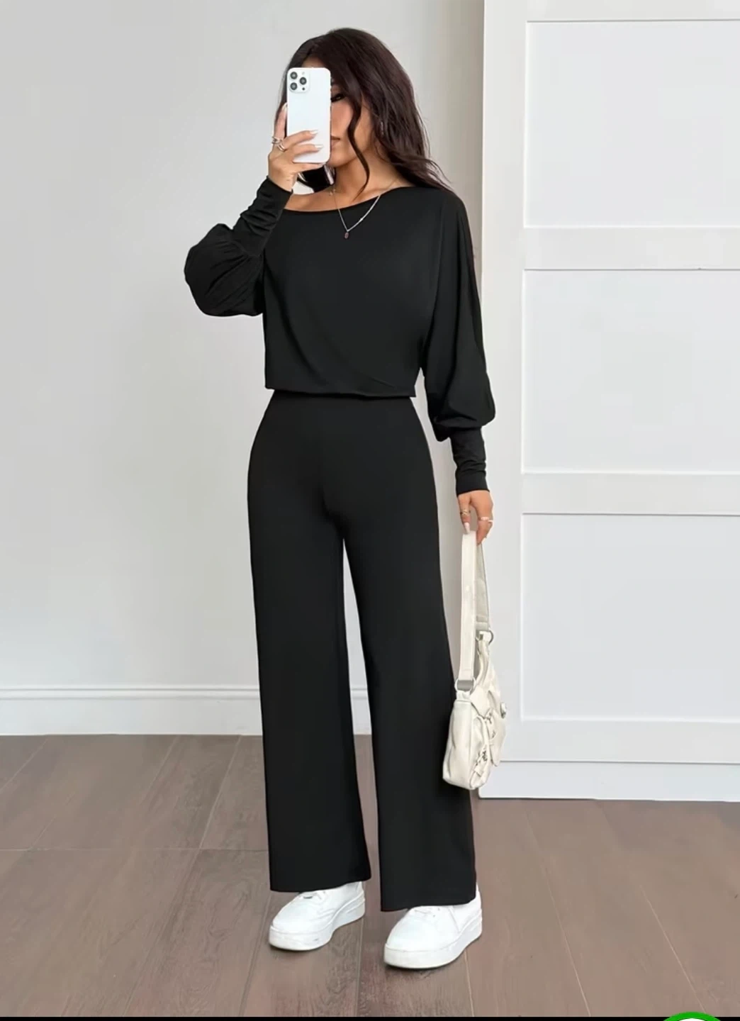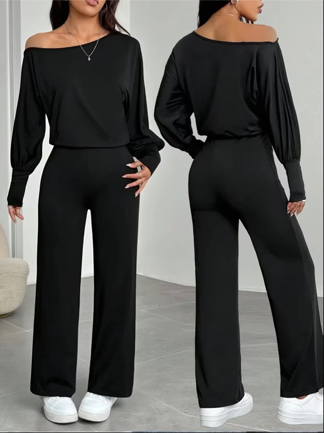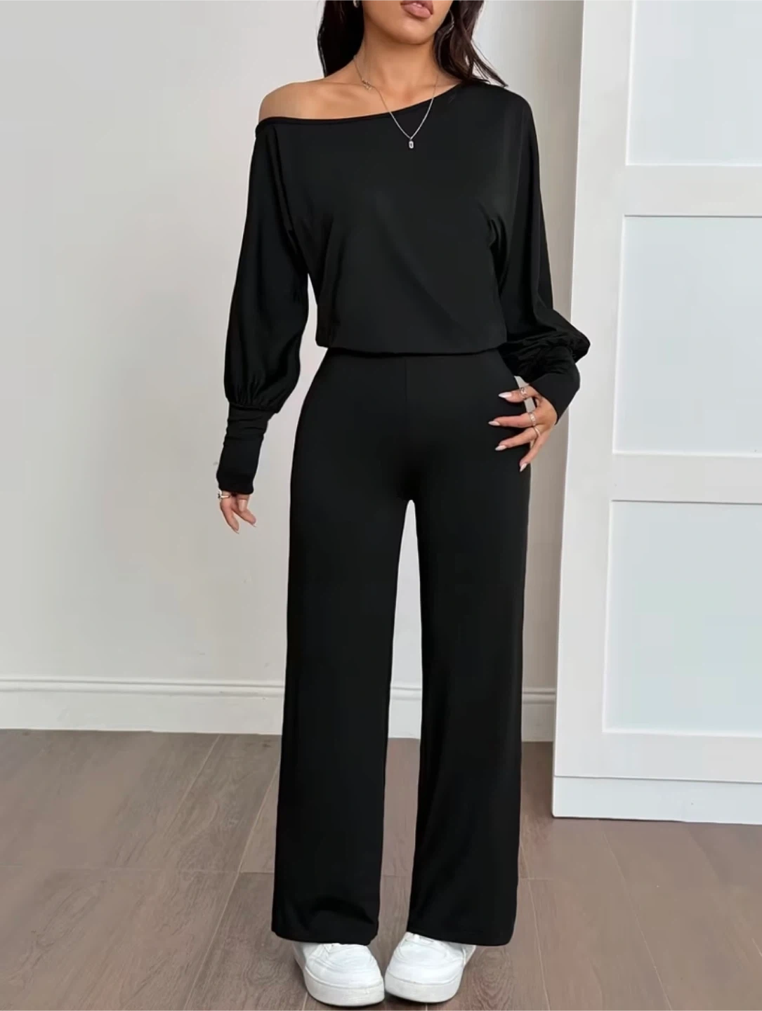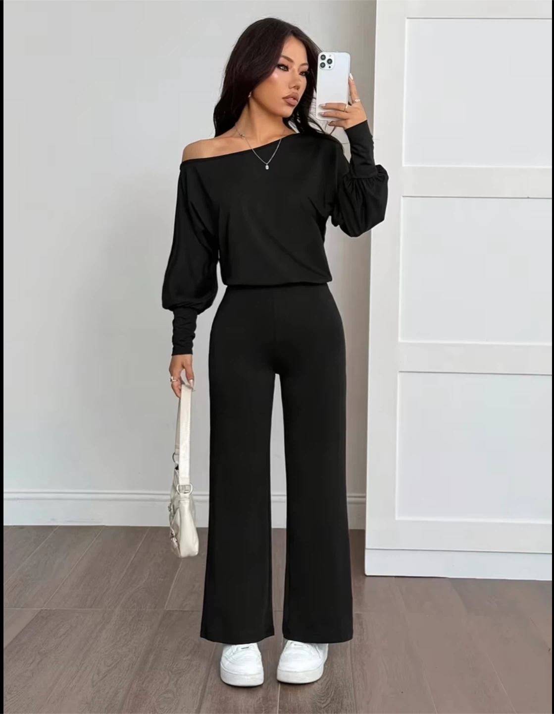 New Two-Piece Set with Asymmetrical Shoulder Top And Long Pants