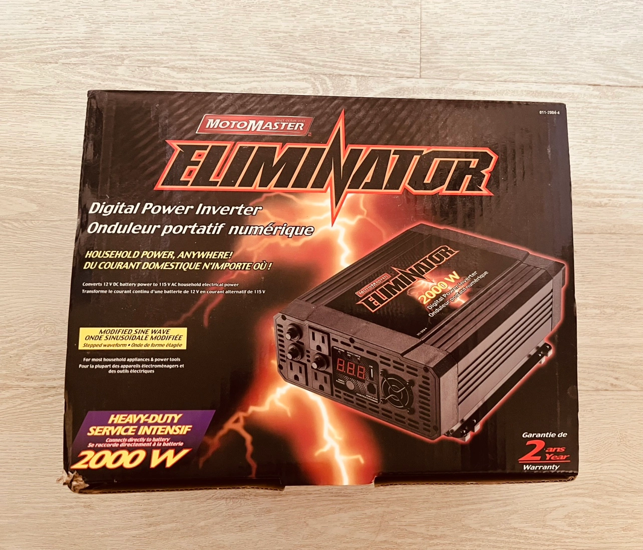 This high wattage MotoMaster Power Inverter converts your DC battery power into 2000 watts of household AC current. Ideal for running appliances and tools while off the grid in your RV, camper, boat or at a tailgating event or jobsite, this 2000 watt power inverter is incredibly versatile. The modified sine wave output works with most AC devices, and overload protection guards against damage from voltage spikes or shorts. The built-in cooling fan on this power inverter keeps things running smoothly even