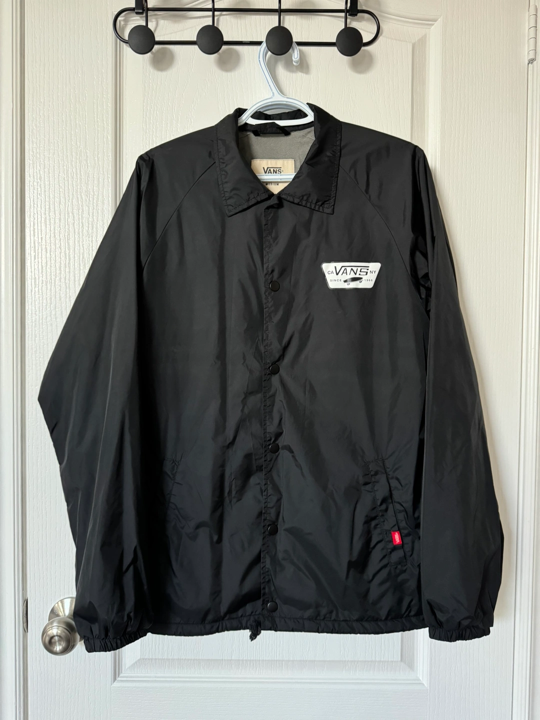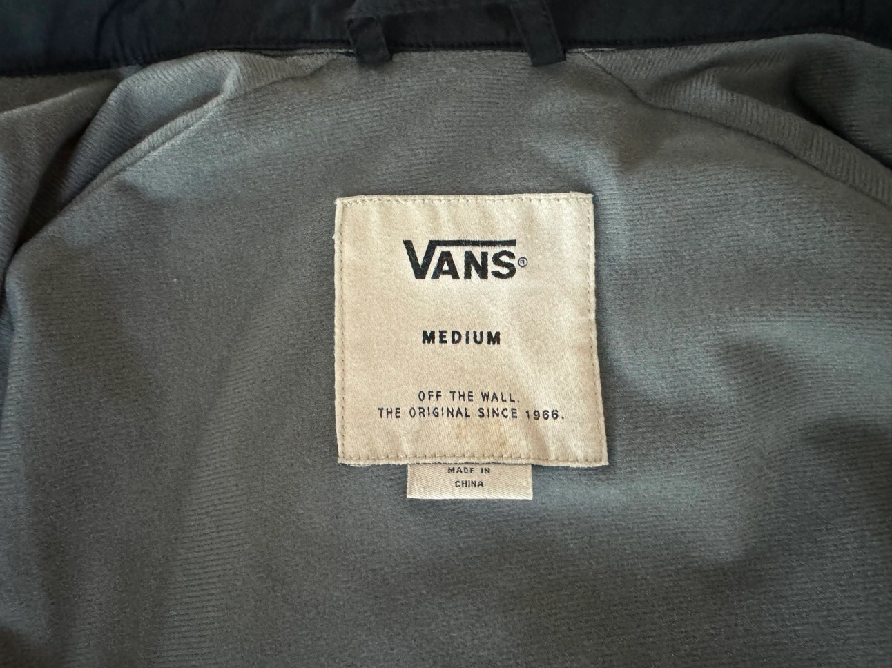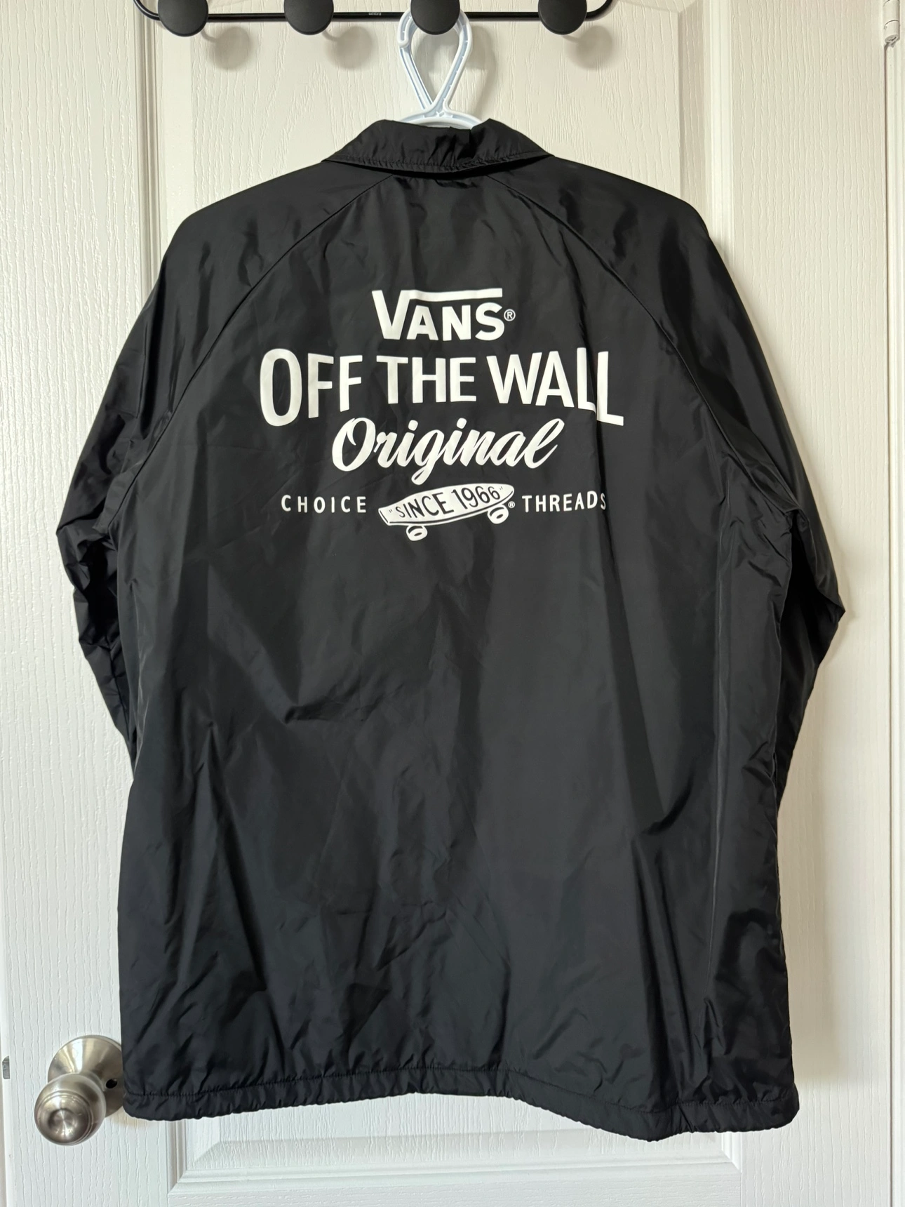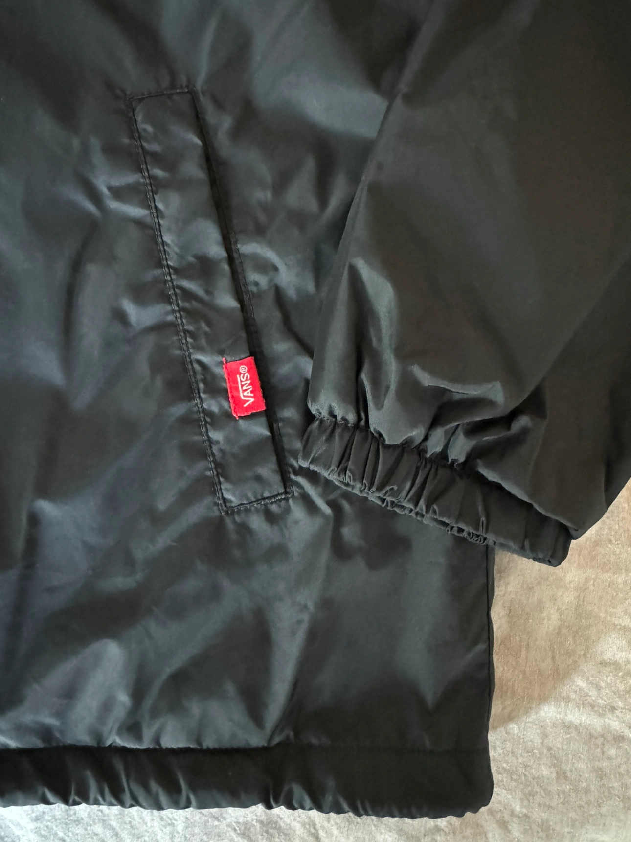 Black Vans Nylon jacket with white logos. Lined with tricot, great for cold weather