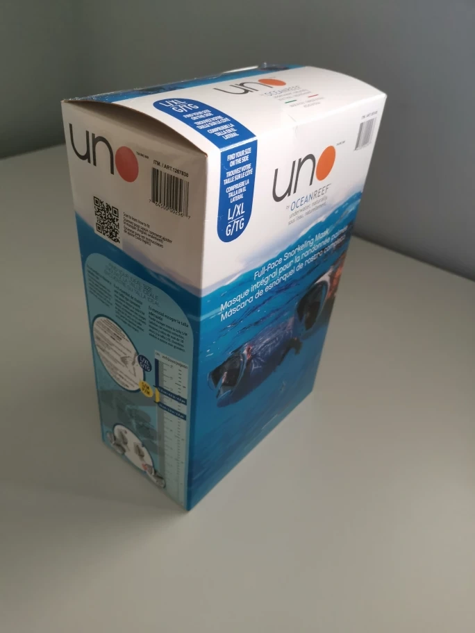 Full-face snorkeling mask in original packaging.