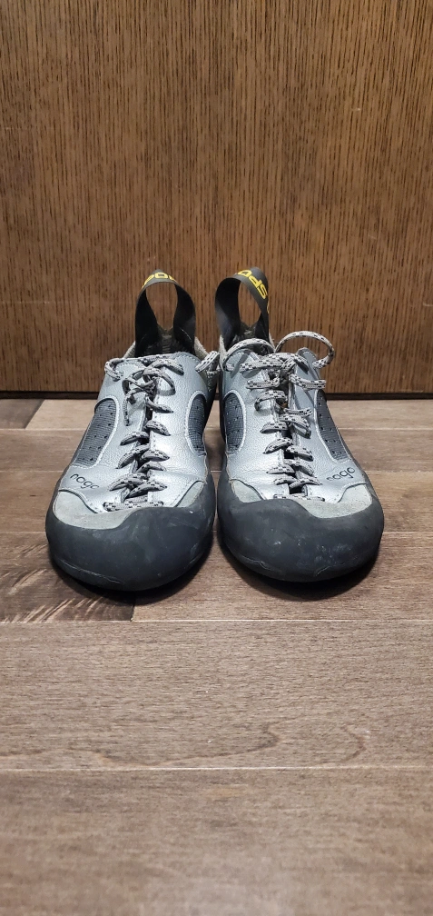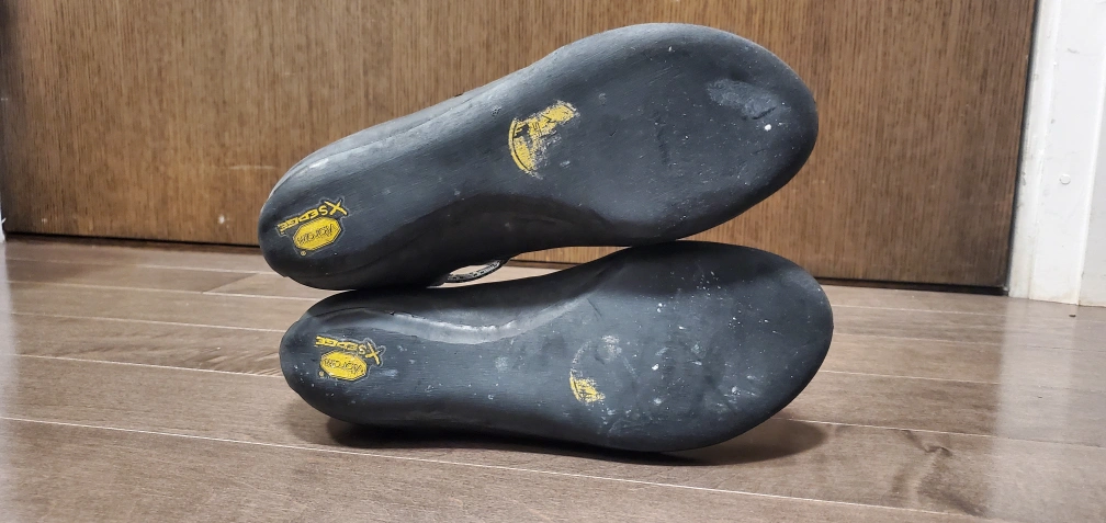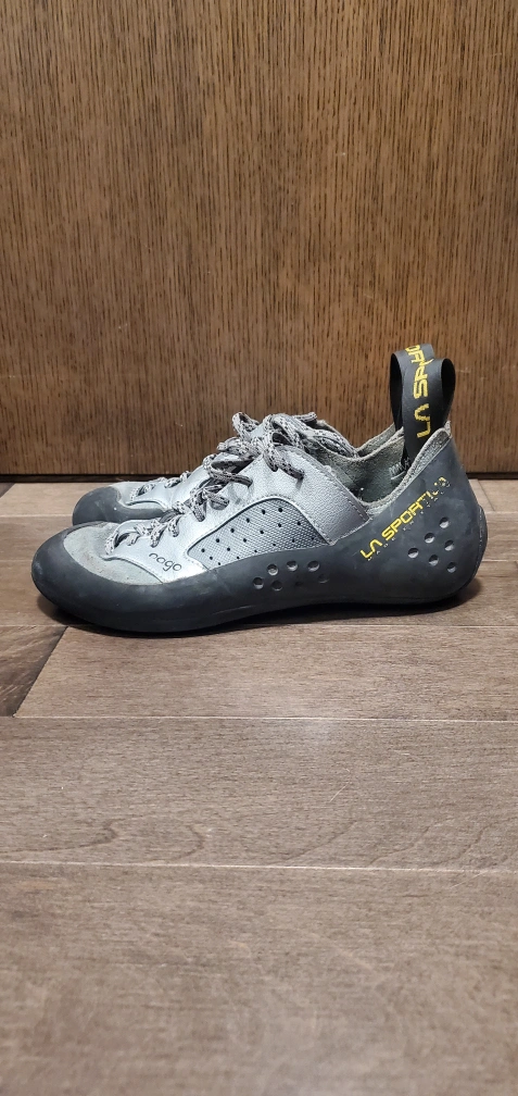 Used but loved shoes with a lot of life left in them! I just got a new pair that fit me better. These are great shoes for a beginner or someone just looking for a comfy pair of shoes they can keep on all session. I climb 11s regularly indoors, and have used these outdoors happily too.
