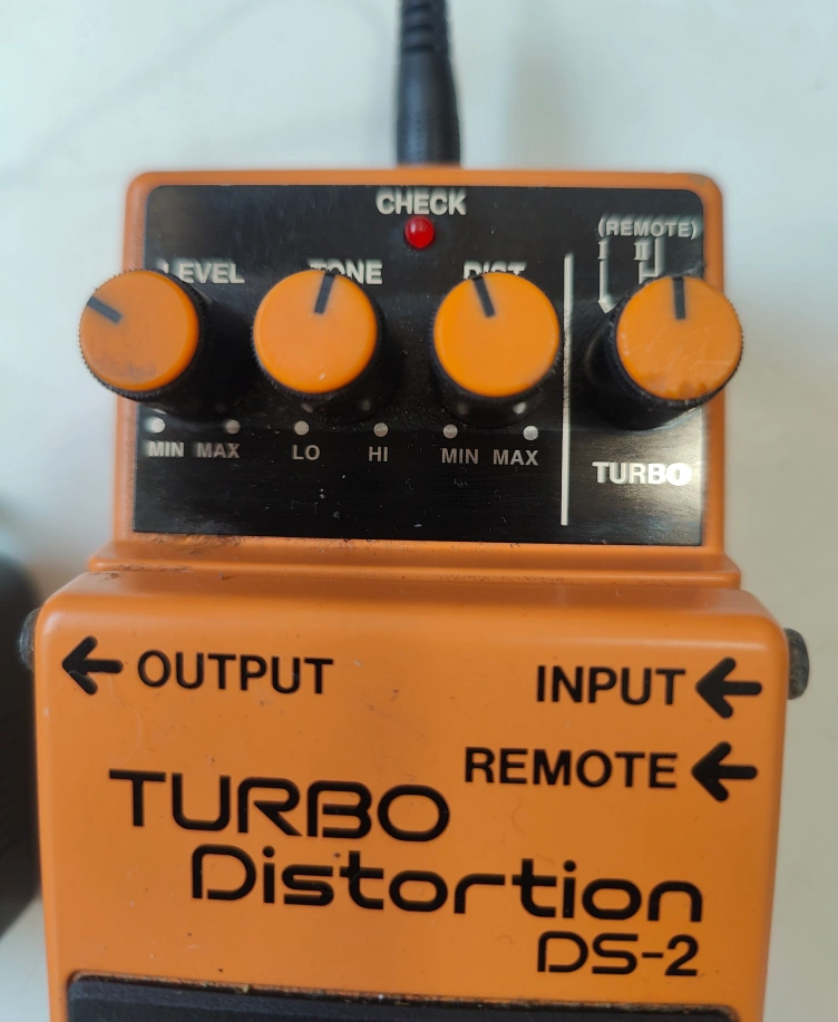 160The DS-2 Turbo Distortion features twin modes for an expanded range of distortion--taking users from blues-rock rhythms to searing leads at the press of a pedal or twist of a knob. It comes with power adapter. Classic BOSS distortion tones with added Turbo modes Turbo Mode I produces warm and mellow distortion with flat frequency response Turbo Mode II provides biting distortion with a mid-range boost, perfect for leads Built-in remote jack allows users to connect an external footswitch such as the FS-5L for instant, hands-free switching between modes.