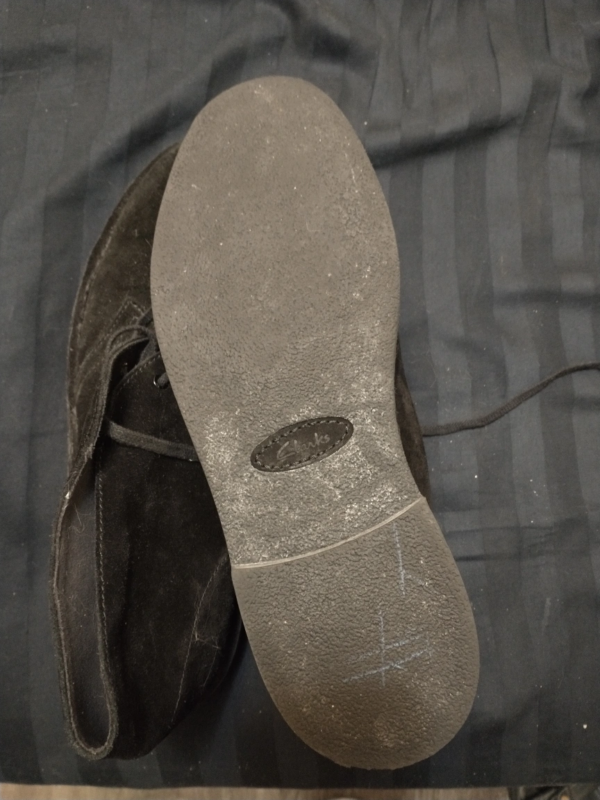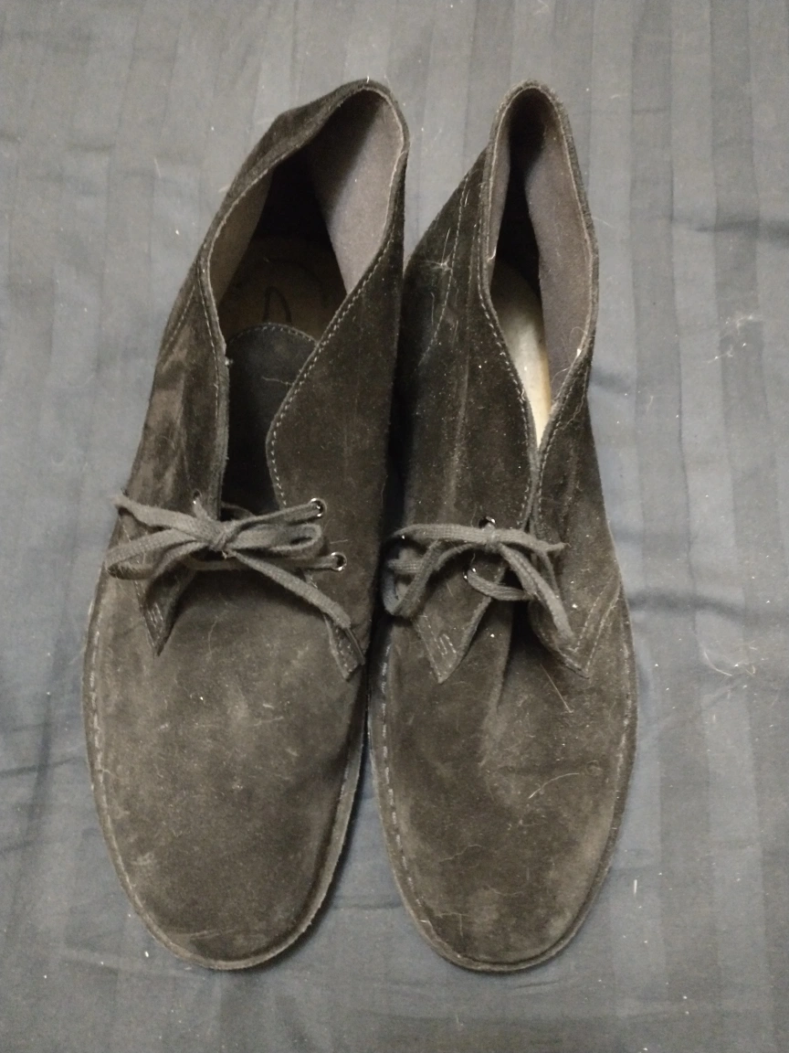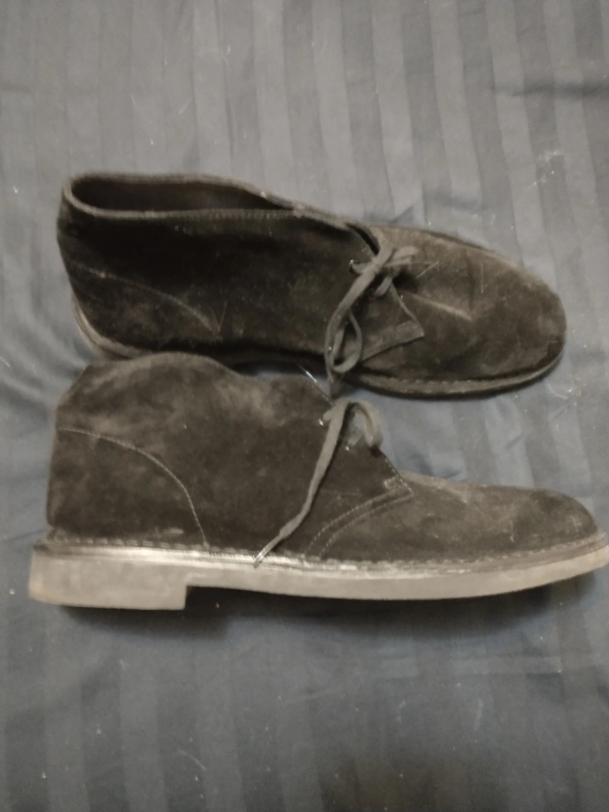 Clarks black suede chukka Boots, size 13. rarely worn, can see by looking at the soles. pictures do not do justice. pick up only no delivery or shipping.