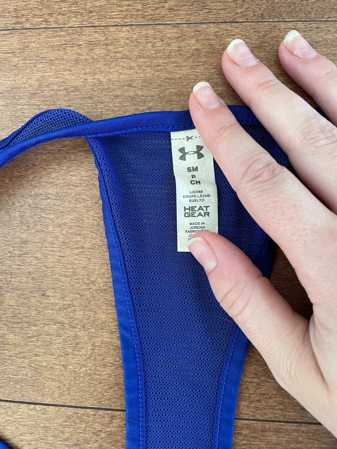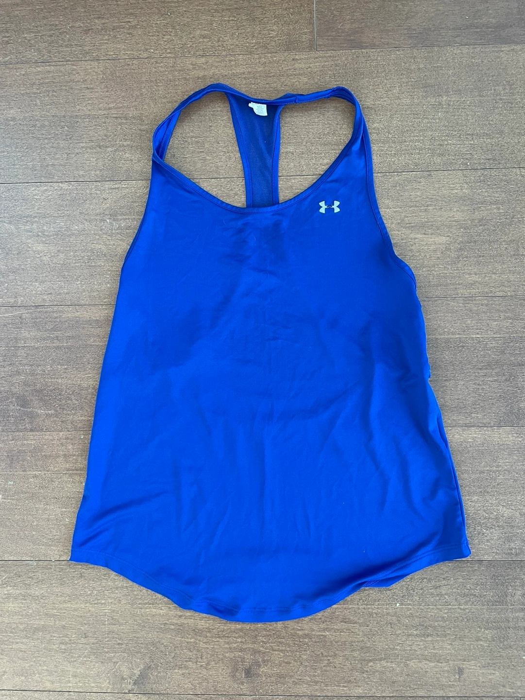Cobalt blue Underarmour workout top. Size small, but fits a little larger so could fit a medium. No flaws, perfect condition. Says heat gear but it’s pretty thin. Great for layering over a sports bra.