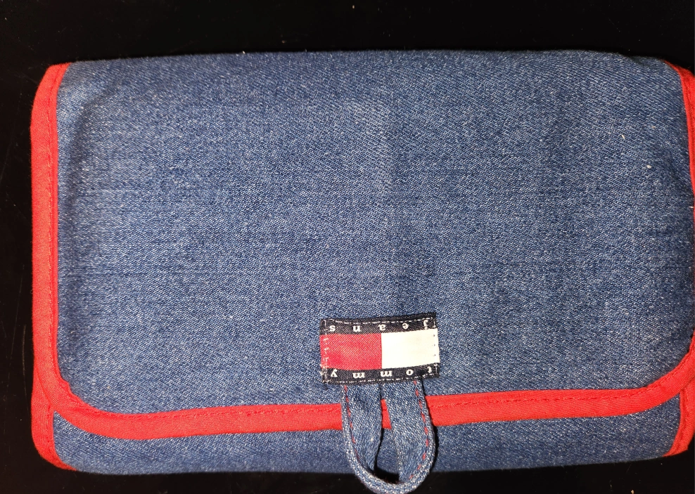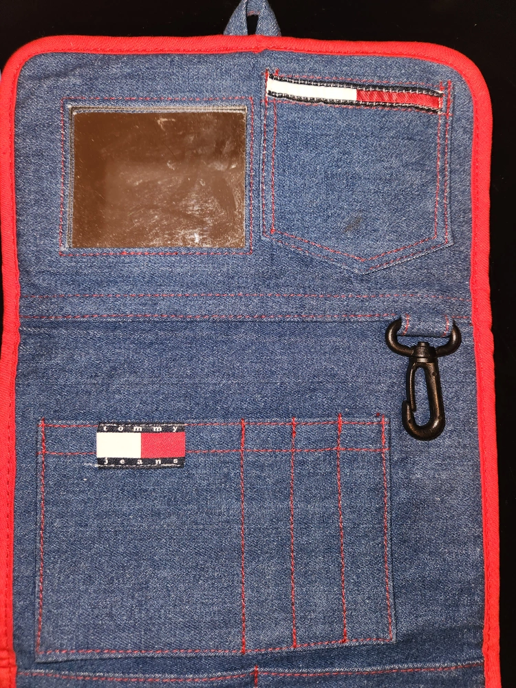 TOMMY HILFIGER locker organizer with hook to hang or a vintage Tommy Hilfiger denim travel case with mirror, multiple storage pockets, a clip, and a mesh pouch for makeup, pens etc. No rips/stains etc. Coming from a smoke/pet free home. $15 Pickup only. Cash only.