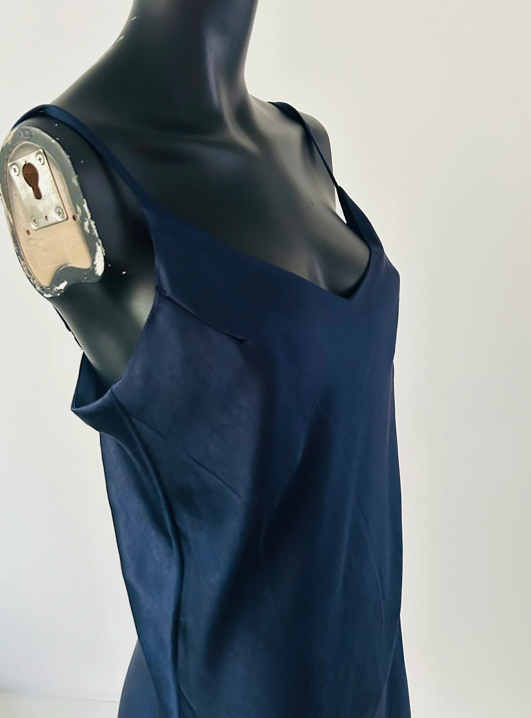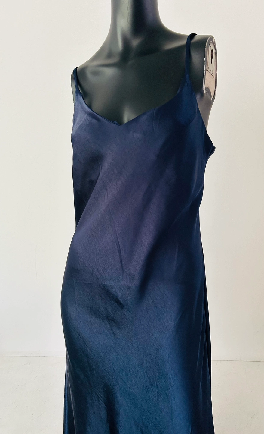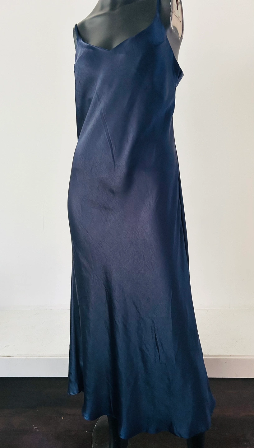 A beautiful navy blue silk slip dress.