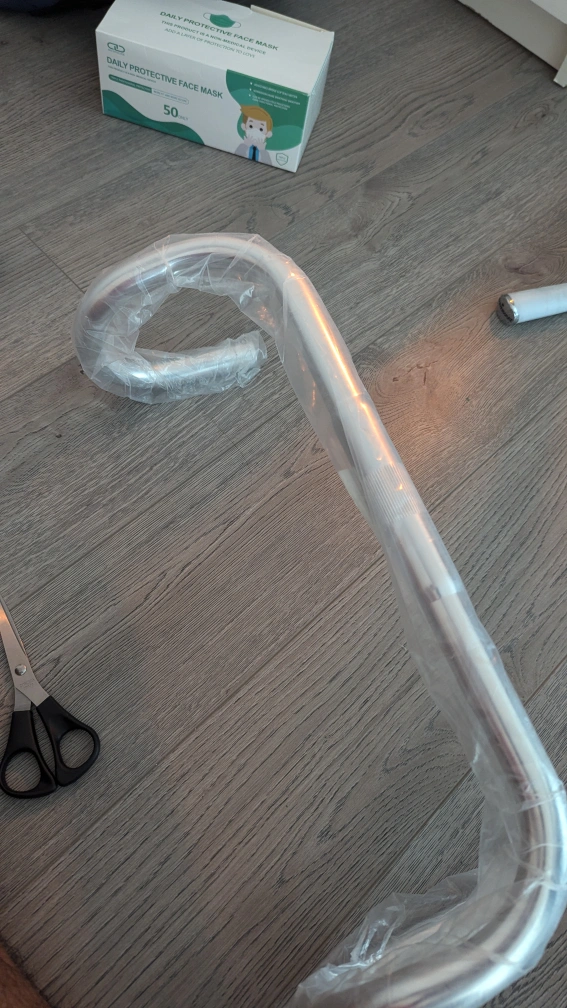 New in packaging, never used. Silver, aluminum, road bike handlebar, 420mm wide, includes bar tape. 22.2mm diameter.