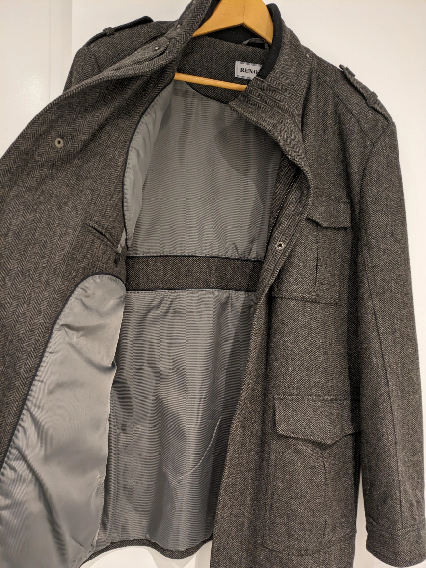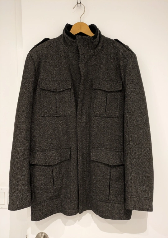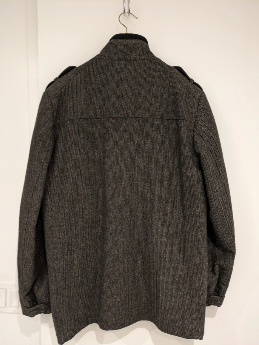 Grey herringbone majority wool blend jacket in excellent condition. Very warm.