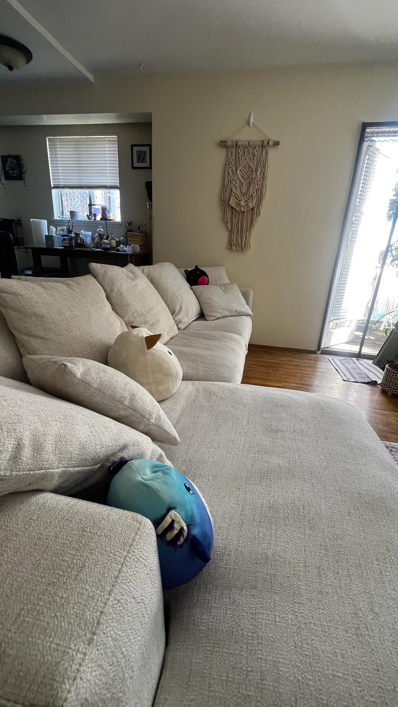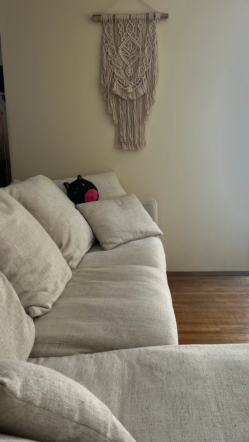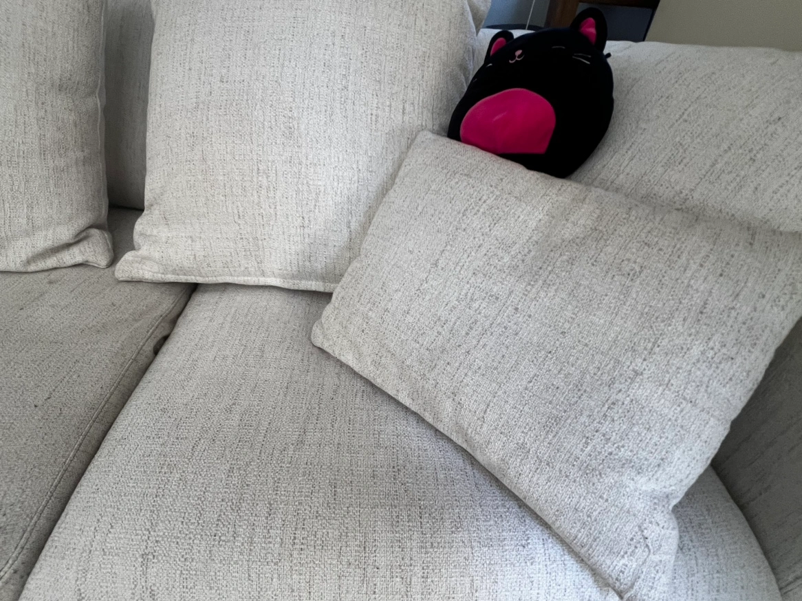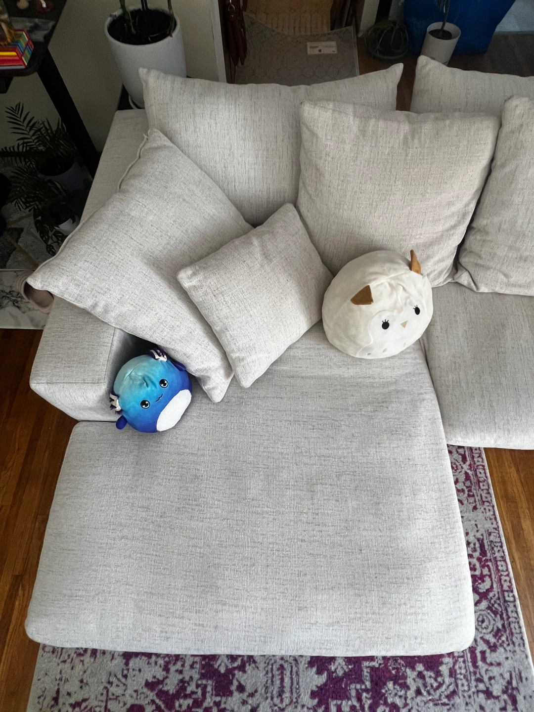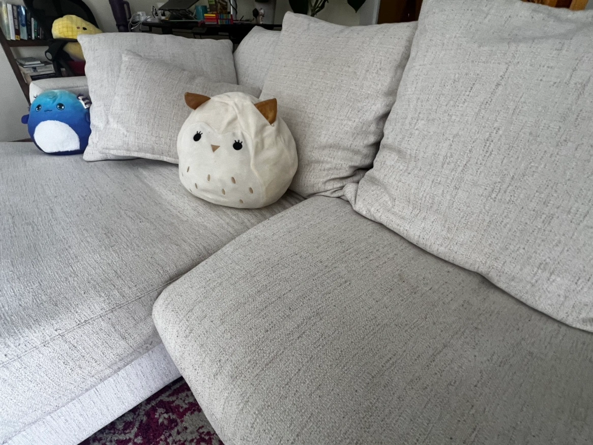 This sectional sofa is in great condition, with a neutral colour that would match any decor. It includes a chaise lounge and is great for large families or anyone who loves to entertain.