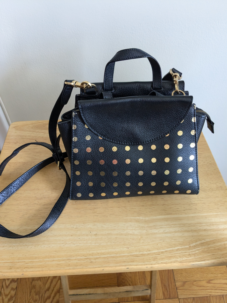 Kate Spade black bag with gold polka dots. Has handles and also detachable strap