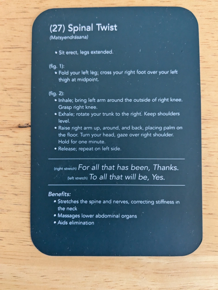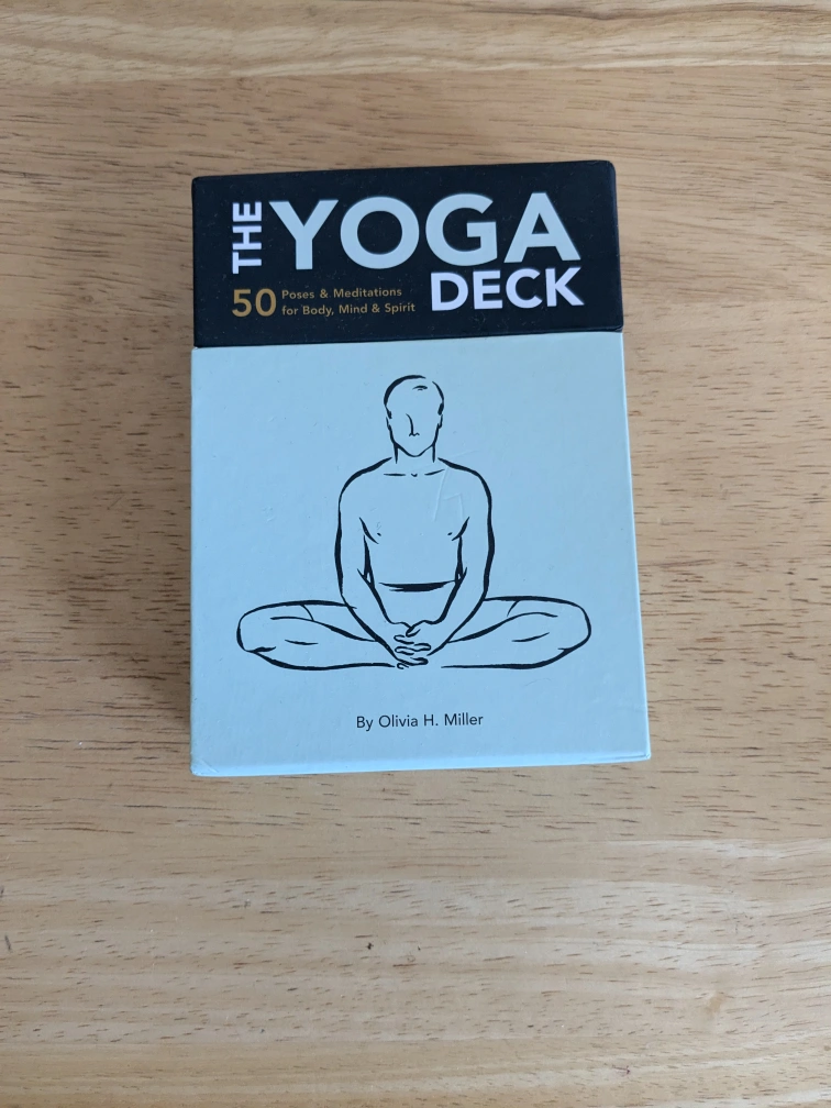 This is a deck of cards with illustrations depicting different yoga poses and meditations. The deck contains 50 cards.