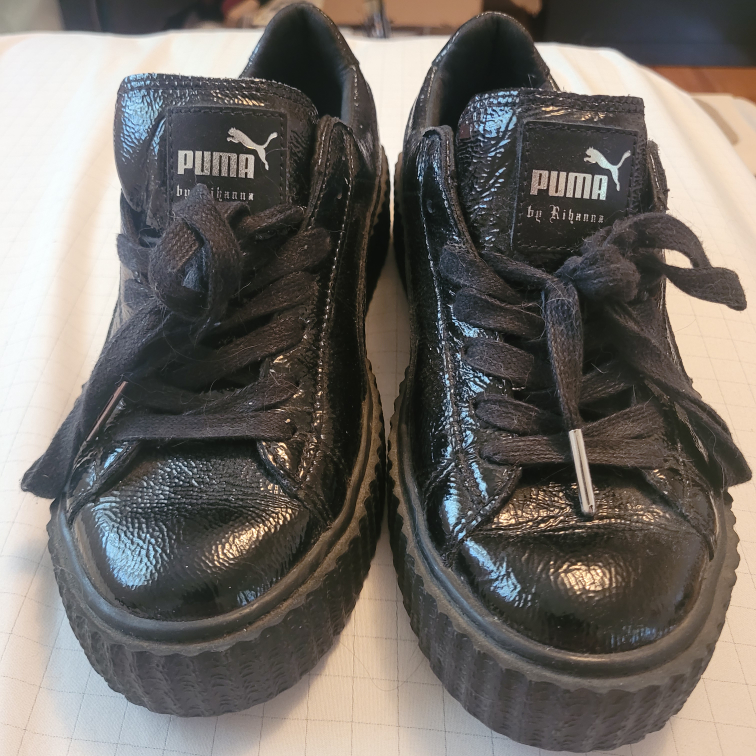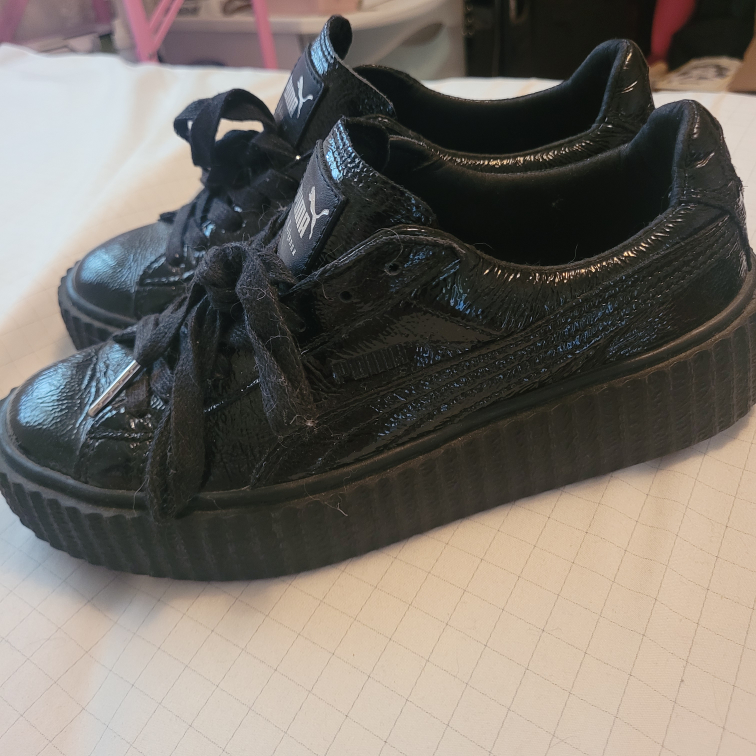 Black Patent Leather Puma Fenty by Rihanna Platform Sneakers. Size Women's 8. These shoes are a classic style and have a comfortable platform. They are great for everyday wear. Pick-up only