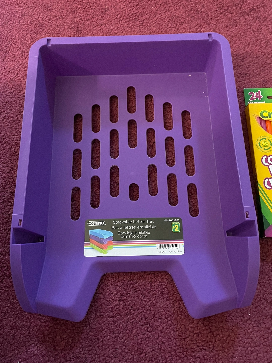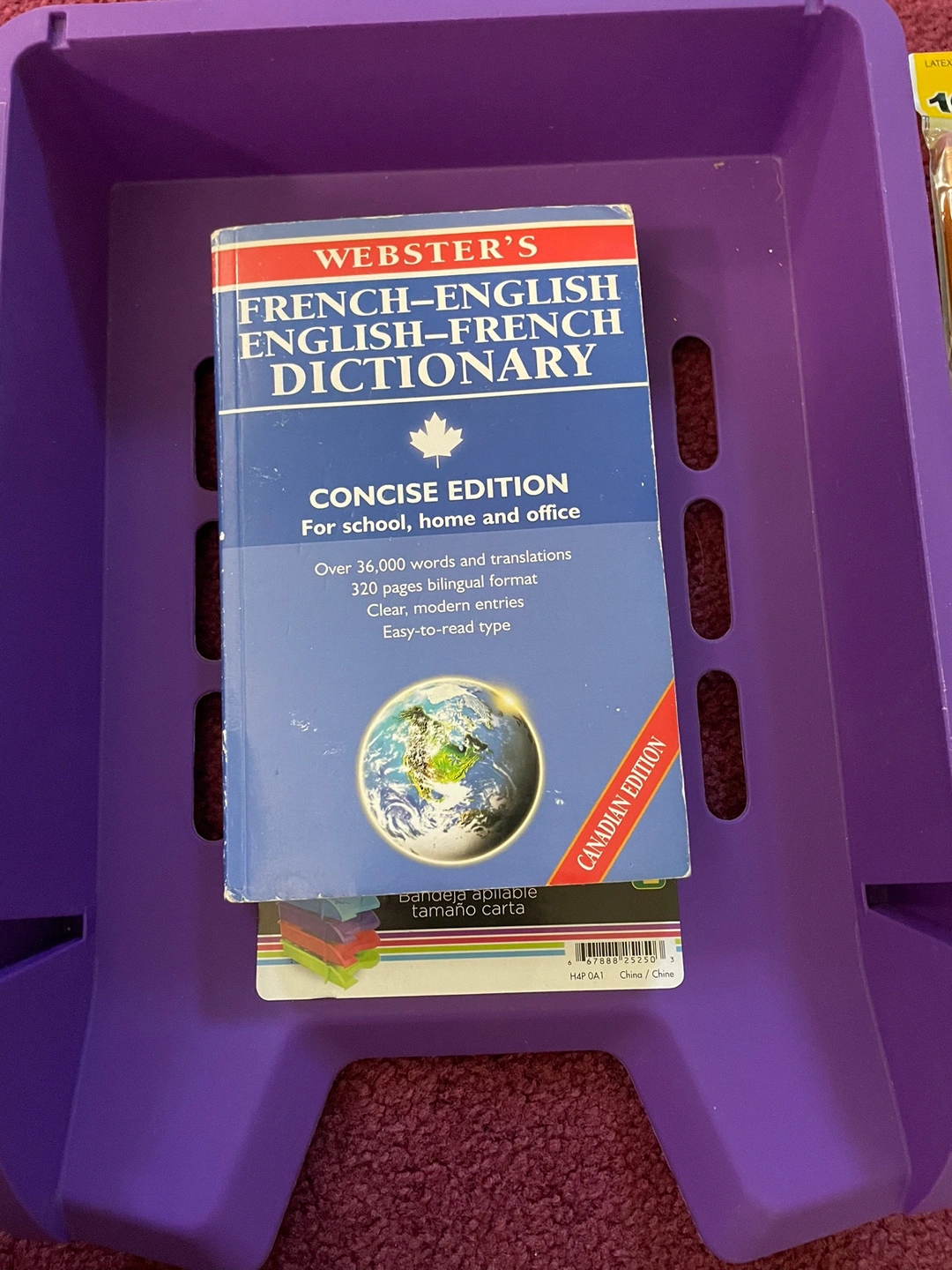 $5 for everything! Also includes a pencil case, an English dictionary and a stackable letter tray