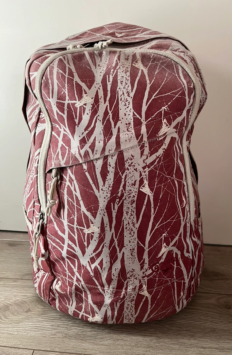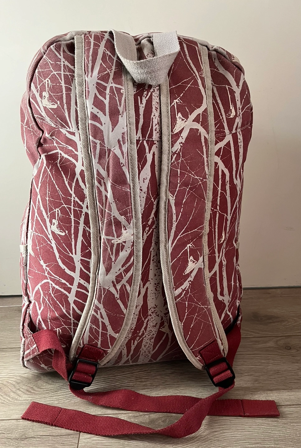 This Converse backpack features three separate compartments for organized storage, including a spacious main pocket, a secondary pocket for smaller items, and a front zipper pocket for quick access. It also has two side pockets and a padded laptop sleeve inside.