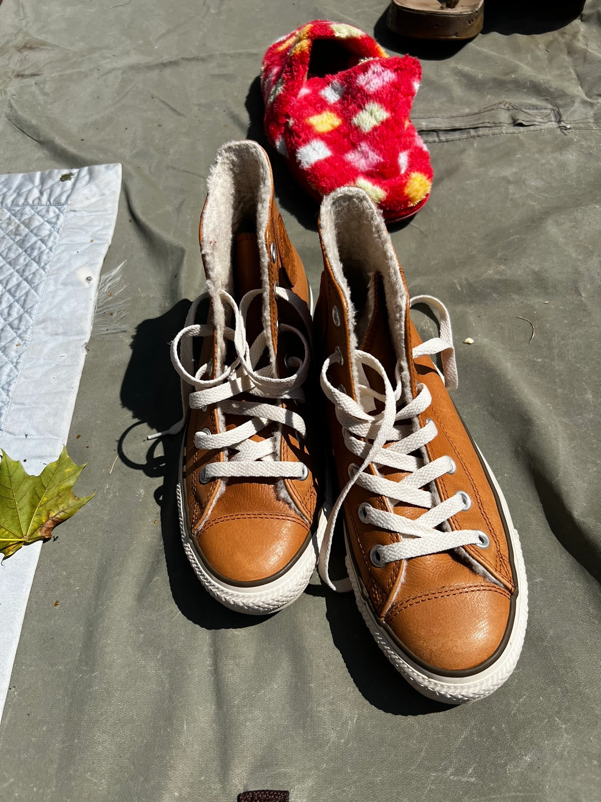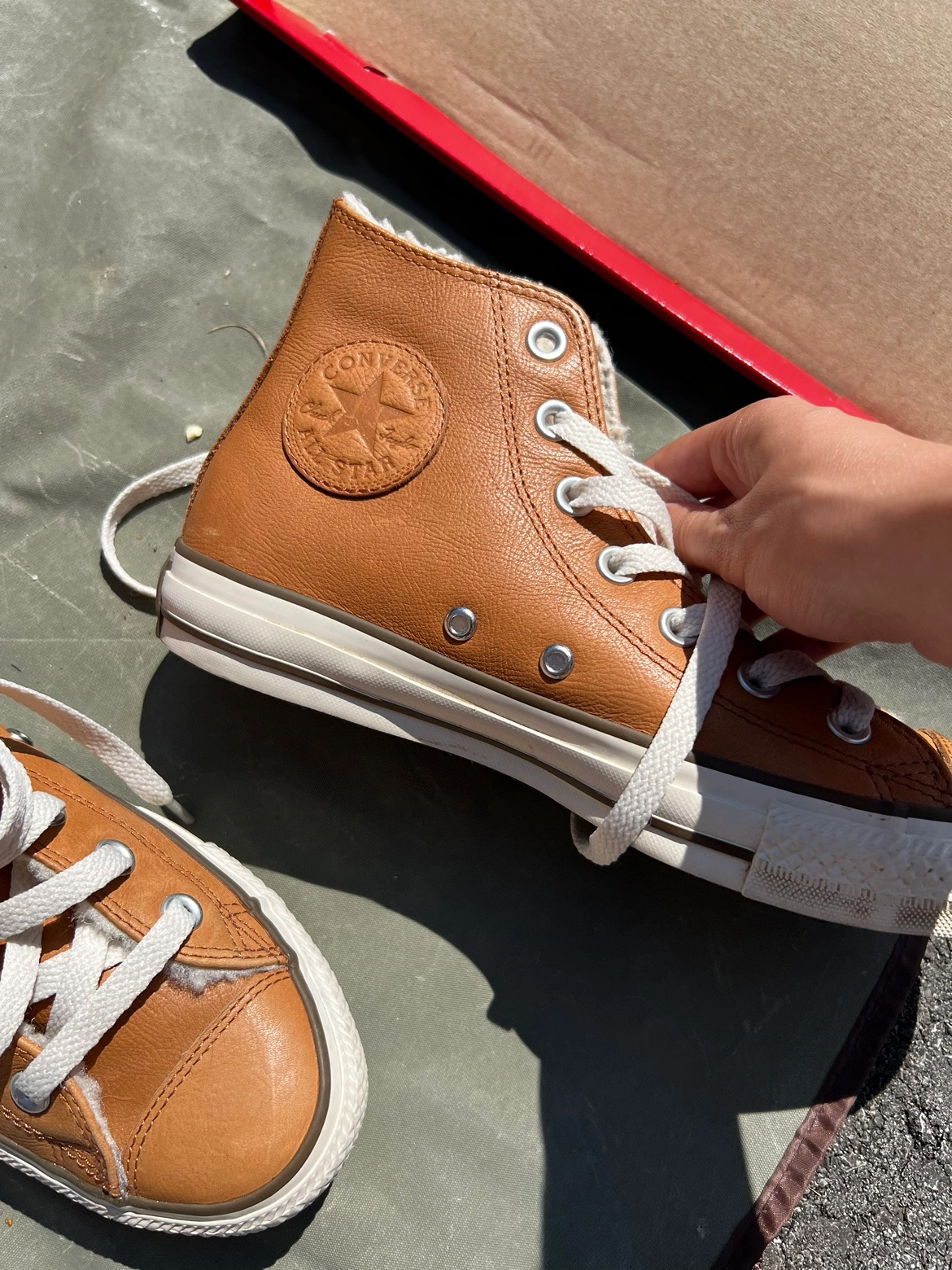 109Size 5 Women's Brown Leather Converse high top sneakers with white laces and a white rubber sole. Only wore once