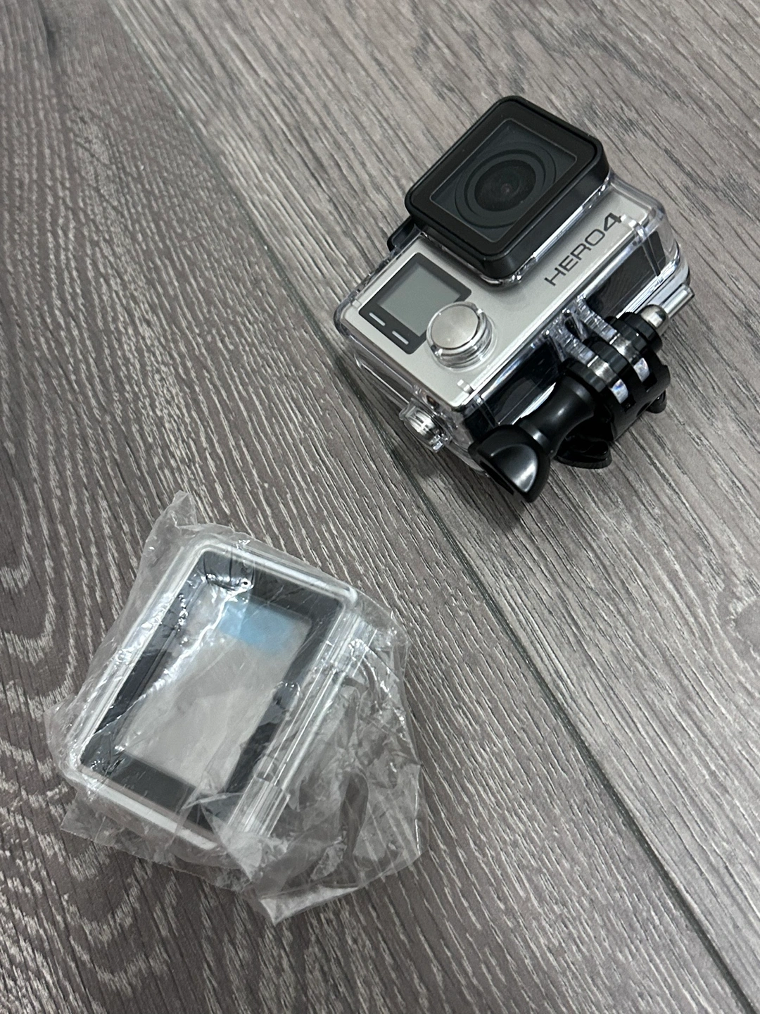 GoPro Hero 4 Silver Edition with housing and a spare back door. Like new. Listing includes everything you see here. Battery included but no charging cables or charger. Provided picture of ports so you can find your own.