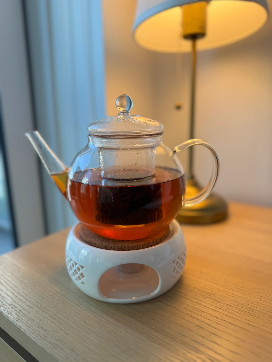 Very aesthetic teapot. Can be used for blooming tea flowers or loose tea as displayed. With removable loose tea glass infuser.