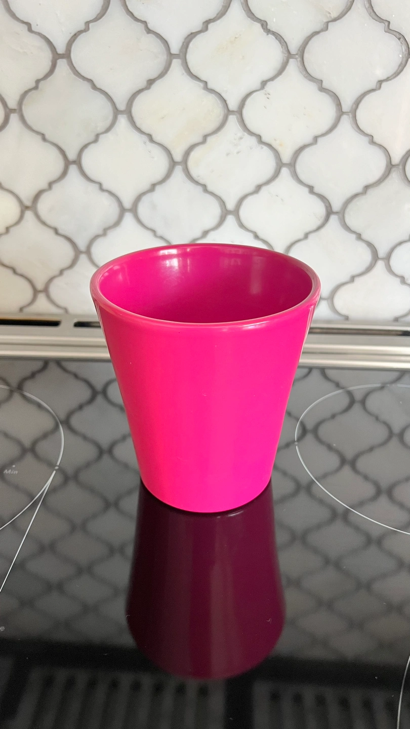 Small pink plant pot. Great for succulents or small plants. The pot measures about 4 inches in diameter at the top.