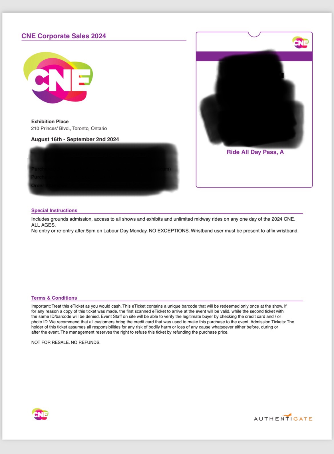 This pass grants the holder access to all shows, exhibits and unlimited midway rides on any one day of the 2024 CNE.