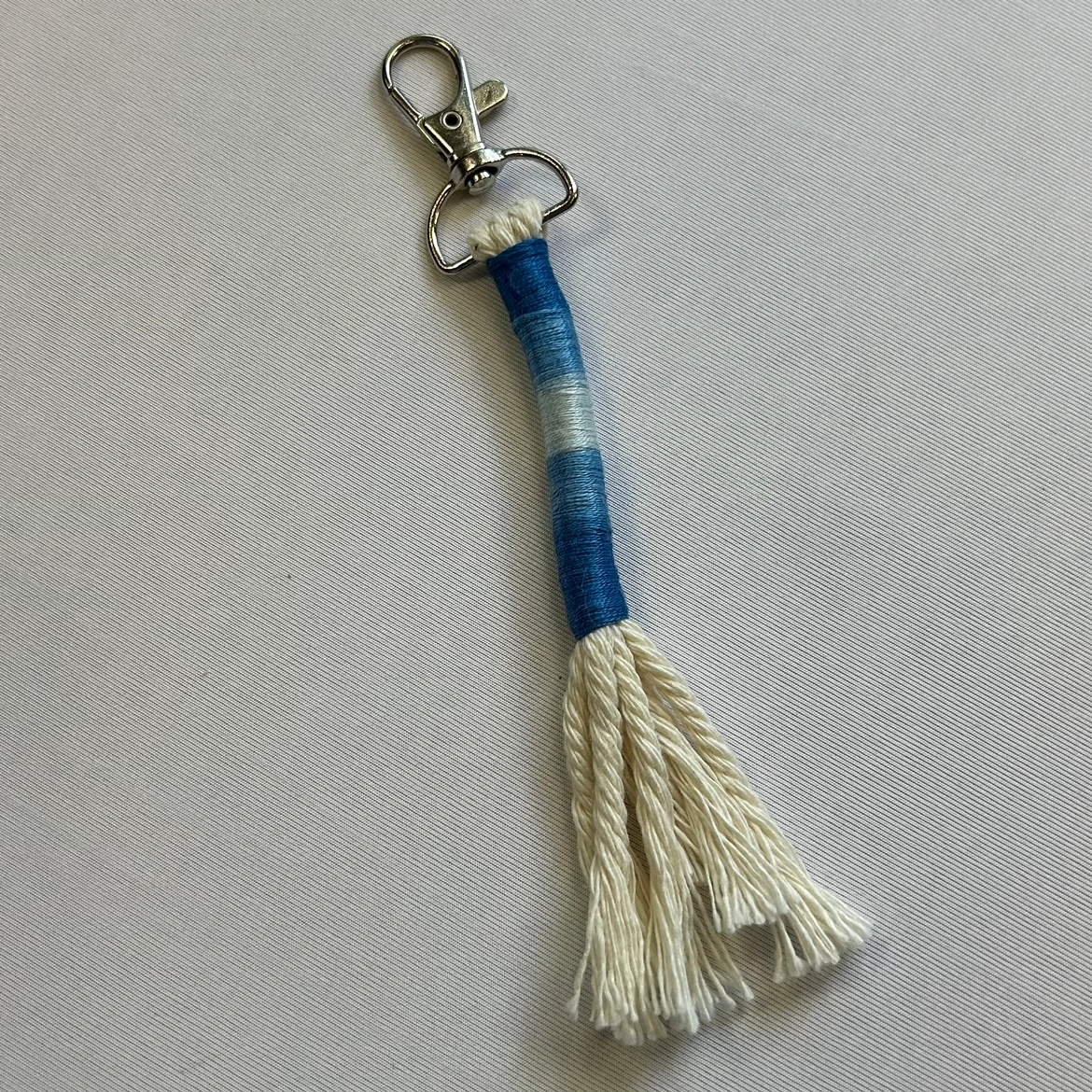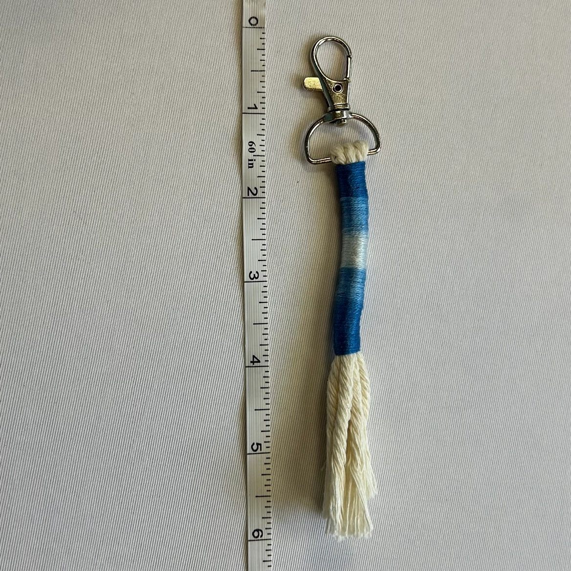 New with tag! Handmade Ombre blue macrame keychain tassel. Lobster claw closure. New never used. See photos for measurements. Cross posted.