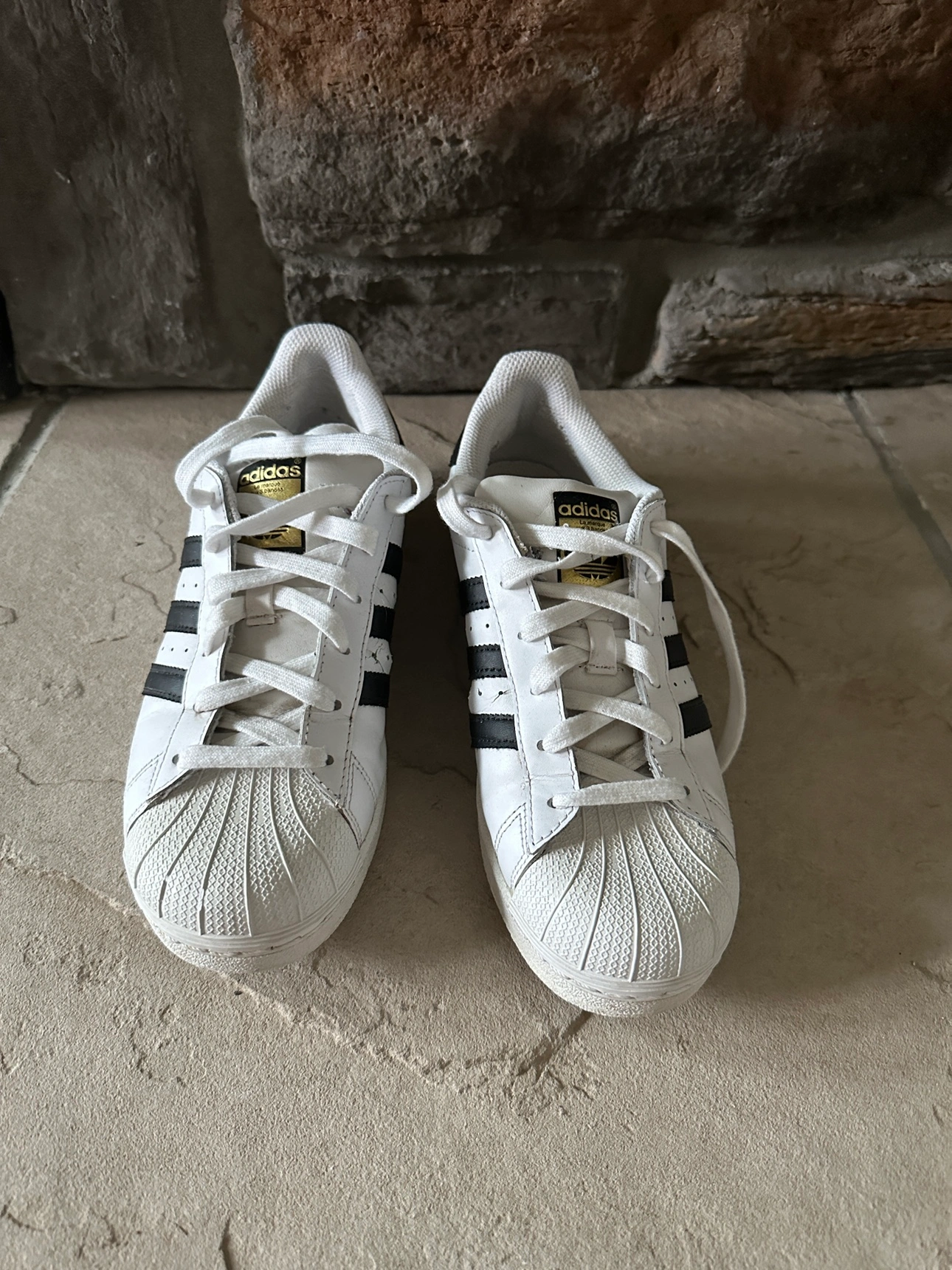 Adidas Superstar sneakers. They have some internal and external wear but still have a lot of life (please see photos 3-4-5)