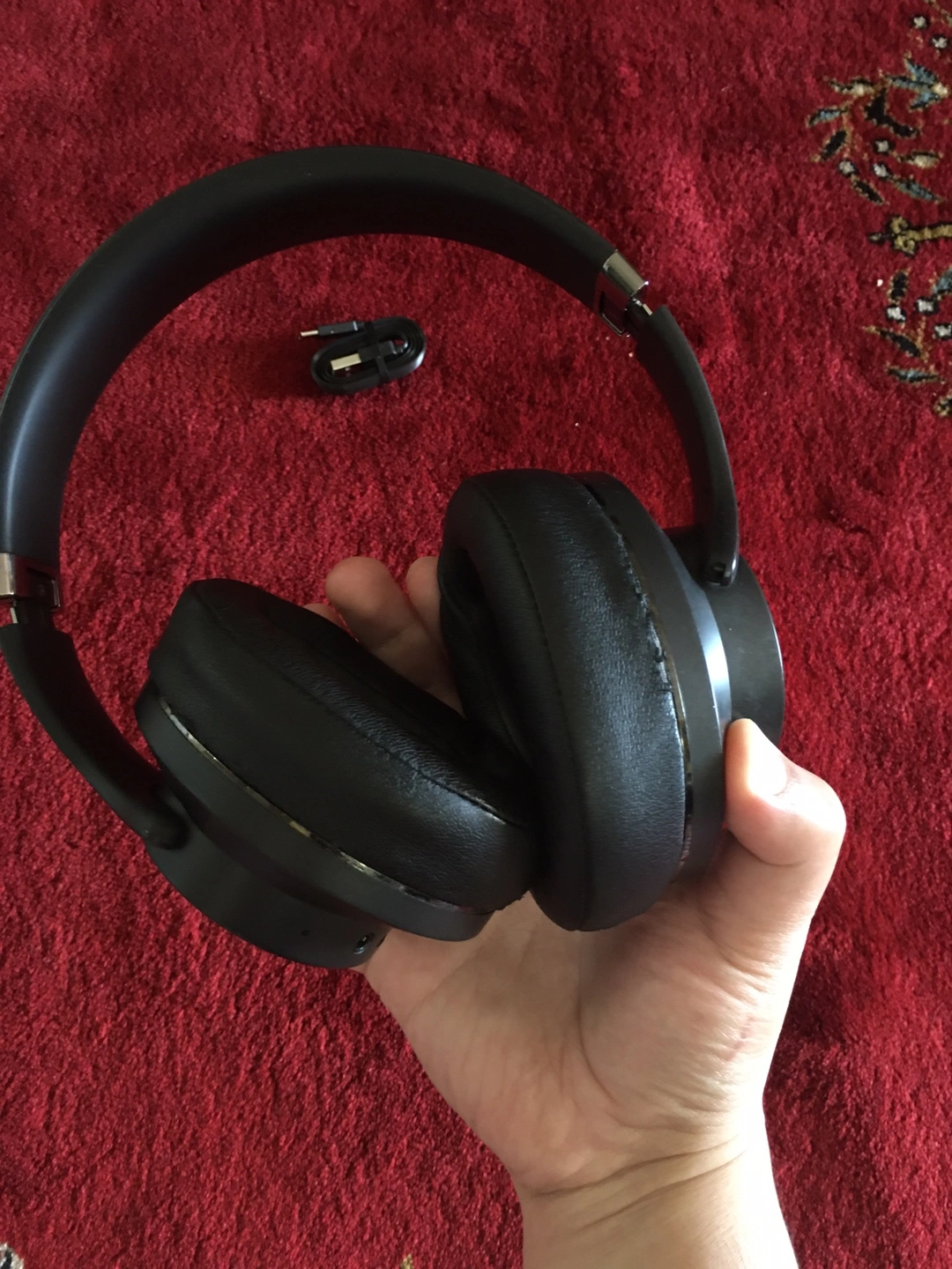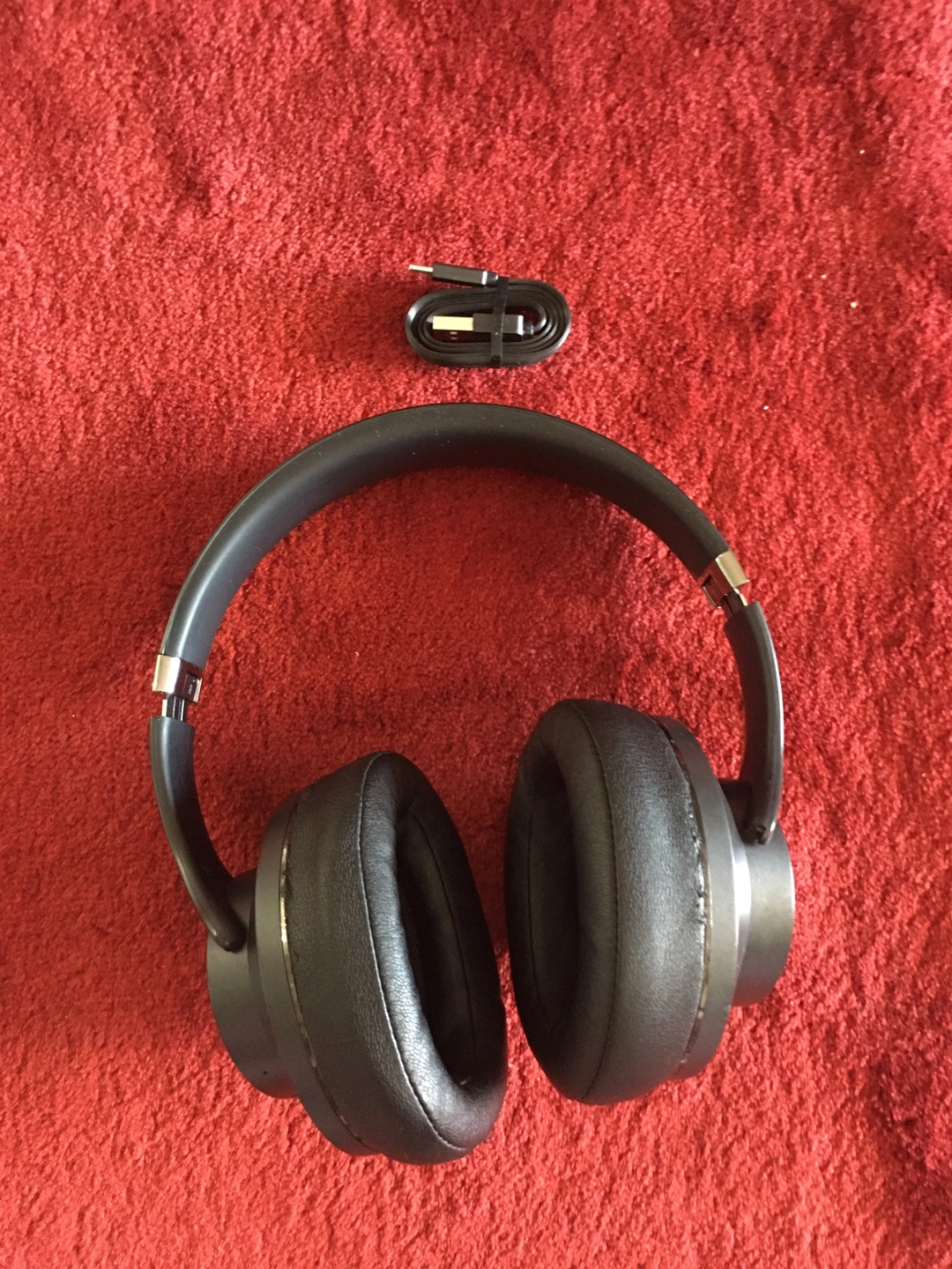 Black Wireless Headphones with charging cable. Works perfectly and last hours I used a lot for audiobooks the headpiece leather has little worn down but it is not noticeable. The price is negotiable pick up only. The charging cable is new I didn’t use it