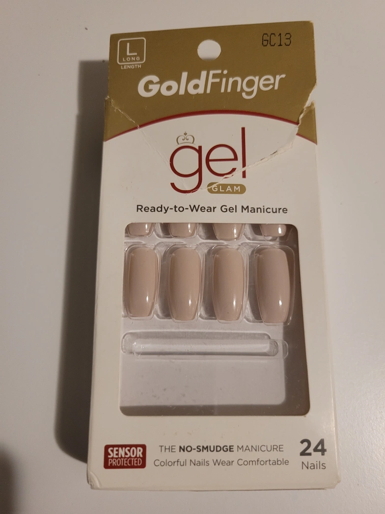 These are long-length gel nails. They are a neutral, light-coloured beige with a natural, glossy finish. They come in a package of 24 nails.