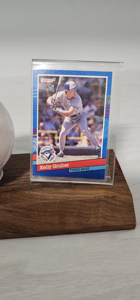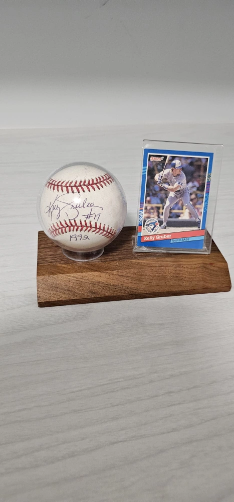 1992 KELLY GRUBER AUTOGRAPHED BASEBALL WITH DISPLAY CASE AND CARD