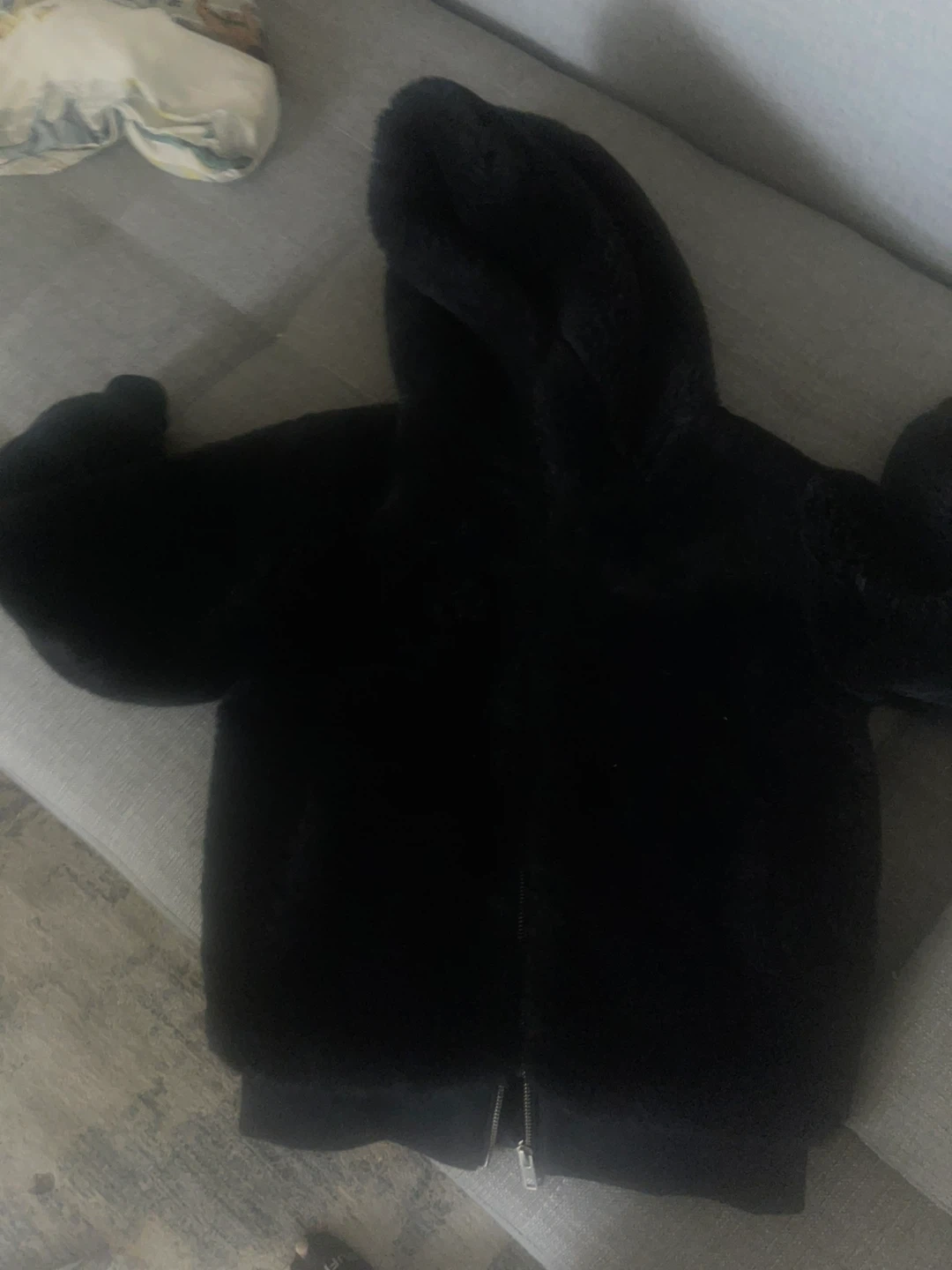 Moose Knuckles Black Fur Hooded Jacket S/P kids girls bunny