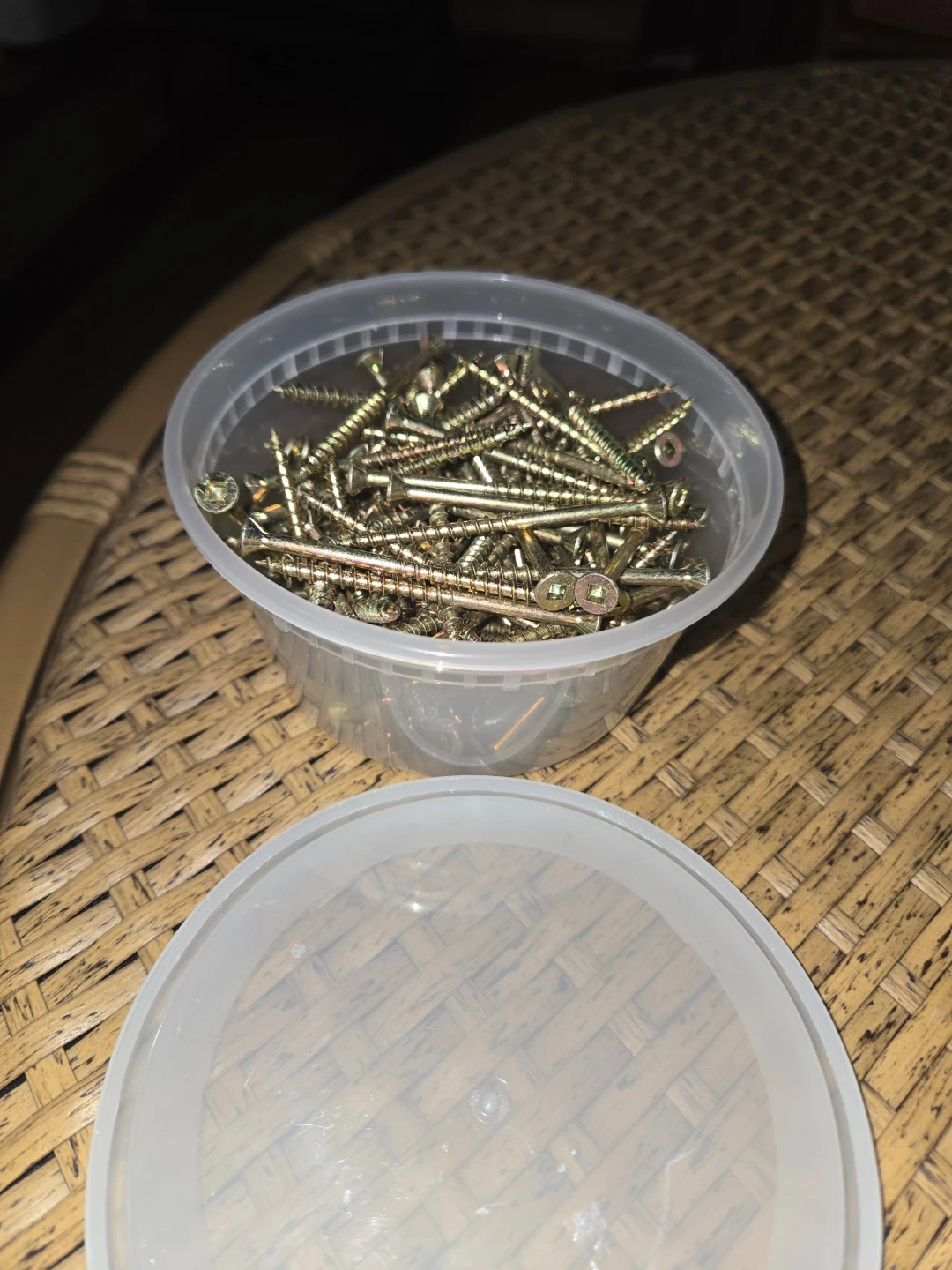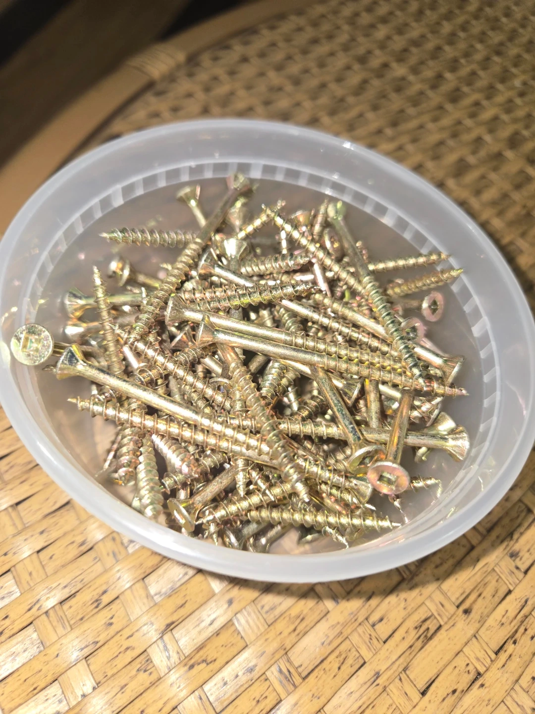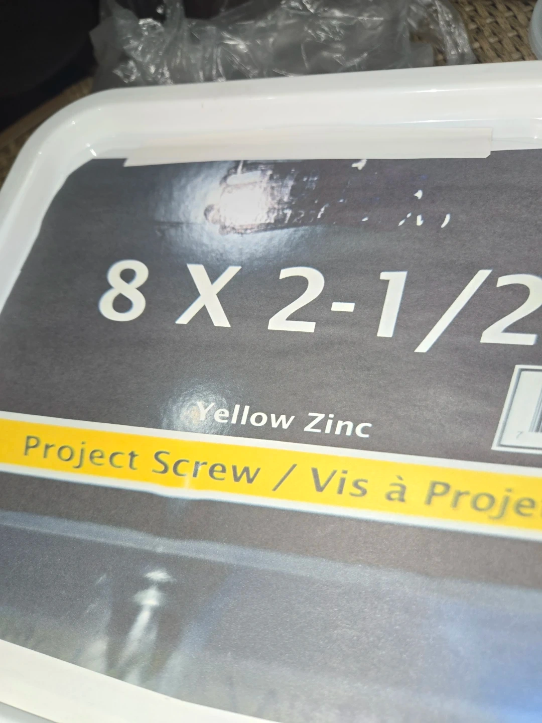 About 100pc for $6 project screws in a container. These are 2-1/2 inch long with a yellow zinc finish. They're useful for various home projects and repairs.