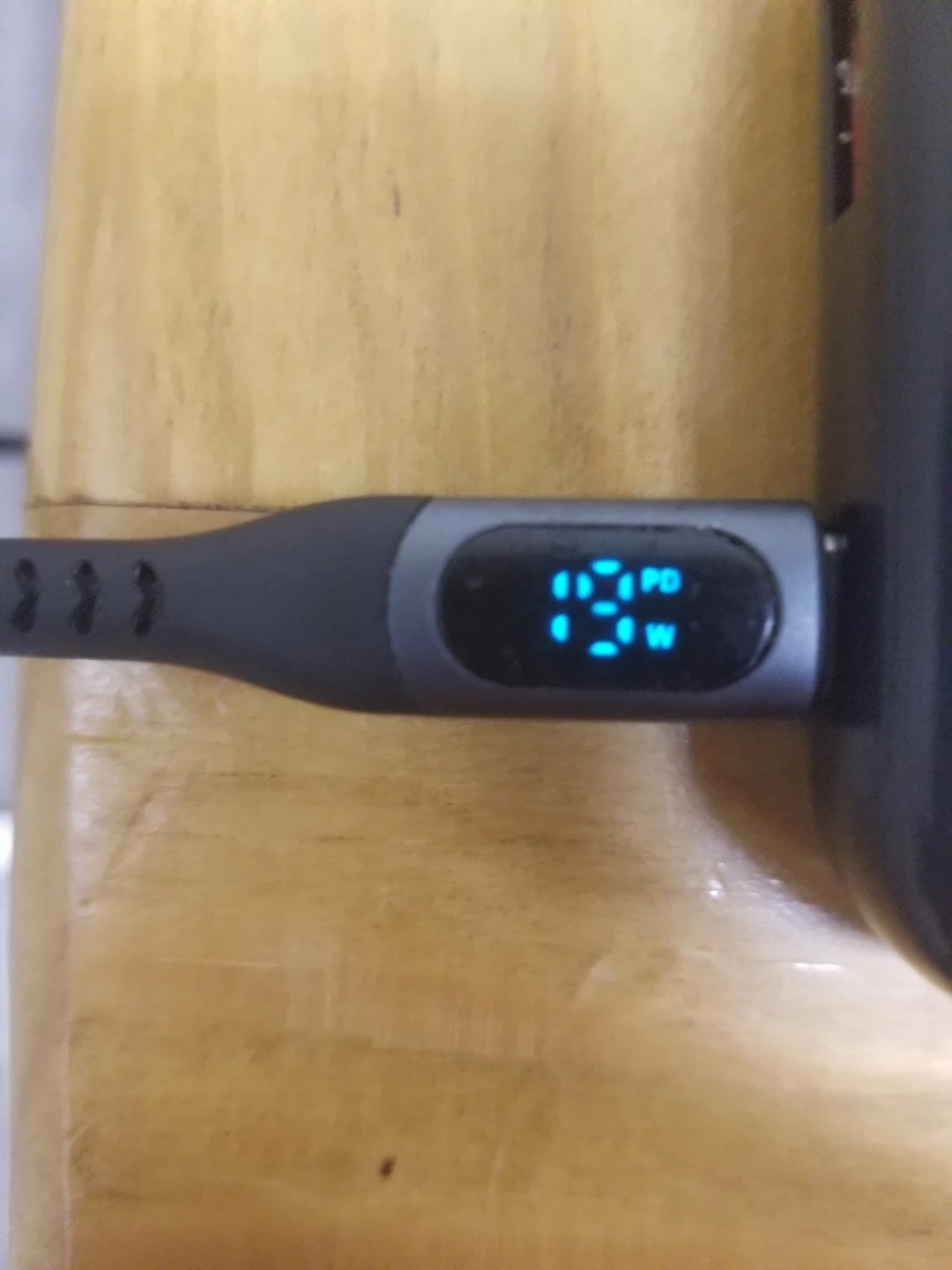 This is a USB-C to USB-C cable with a 100W power delivery rating. It features an integrated digital display showing the charging wattage. Fast charging capabilities for compatible devices.