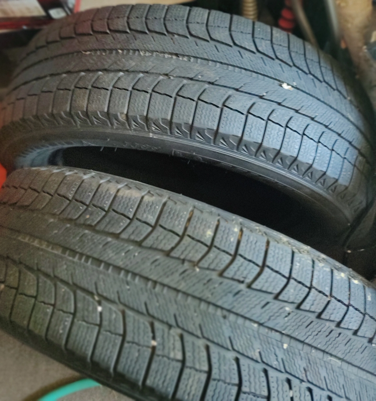 Very little tread wear. Original factory tread depth listed as 10/32” or 5/16”. Current depth appears to be ~ 9/32".
