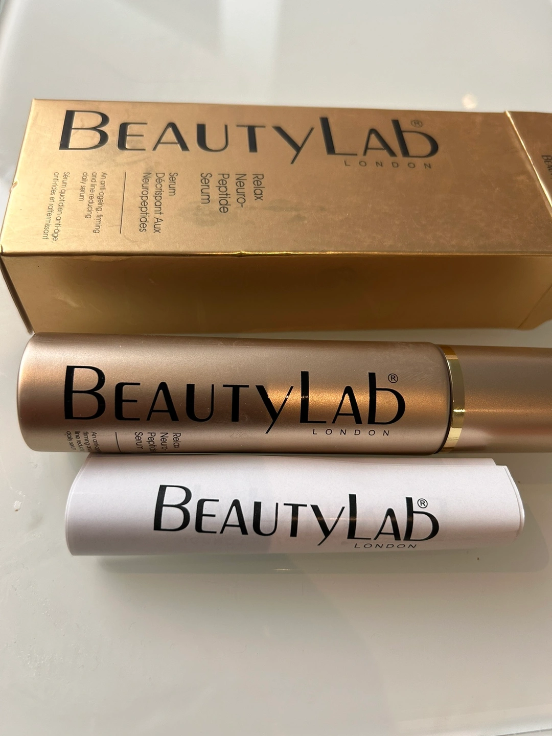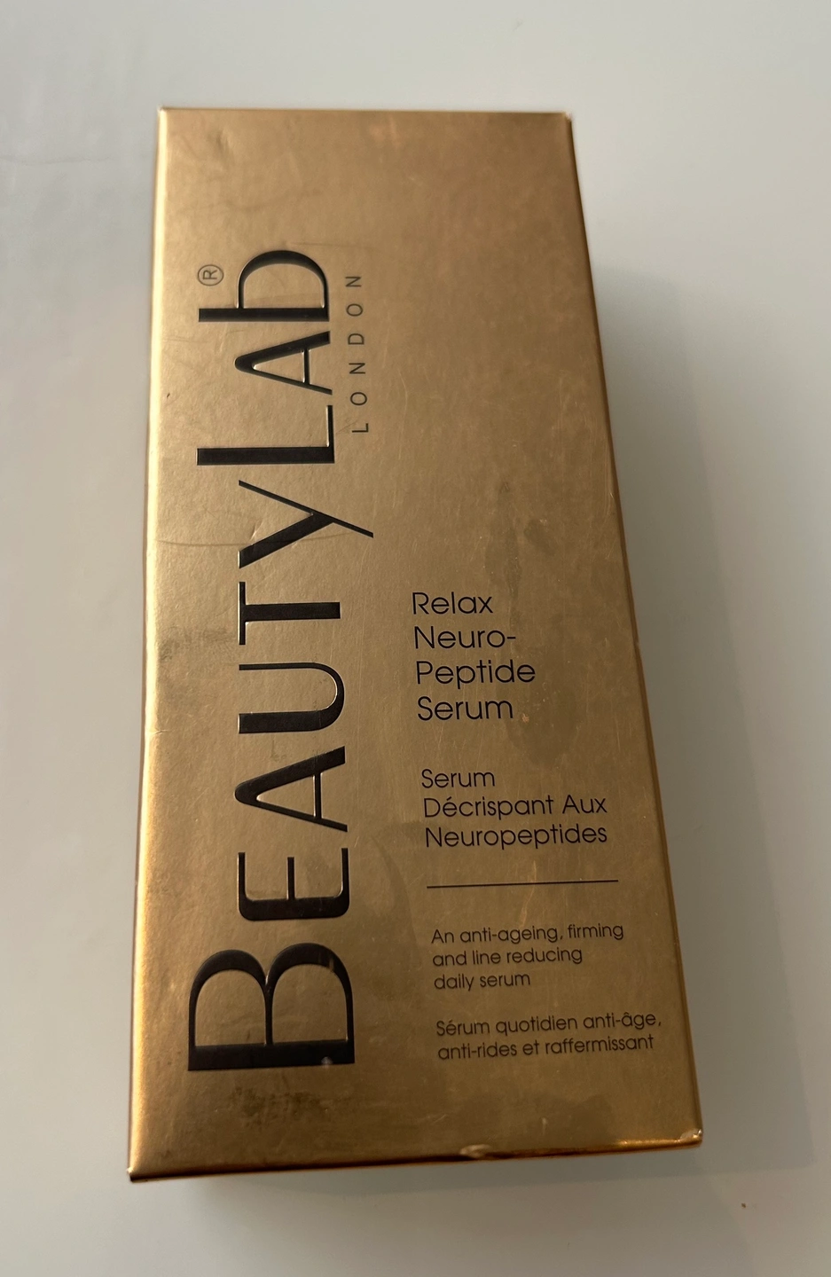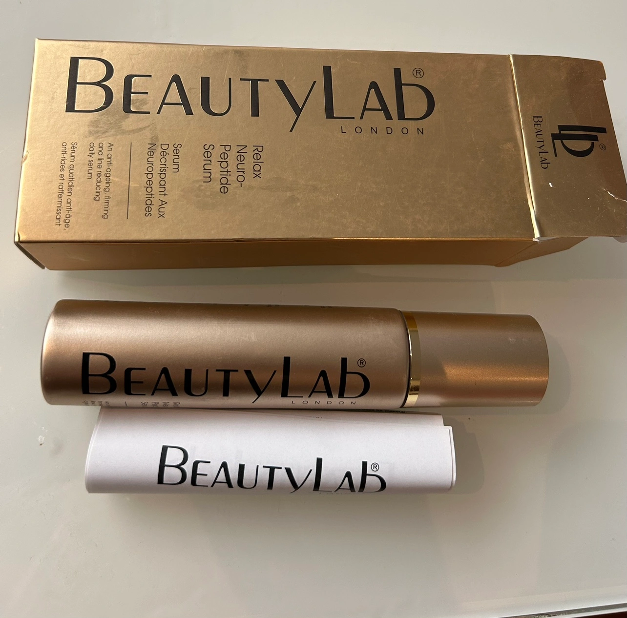 Beauty Lab Relax Neuro-Peptide Serum with Hexapeptide-8, Liposome C, Tripeptide-1, Vitamin A and Hyaluronic Acid. An anti-ageing, firming and line reducing daily serum. This is a full-sized bottle. New in box Beauty Lab London relax Neuro Peptide serum. 50 ml/1.69 fluid ounces. Never used. Anti aging serum. Firming. Paraben-free. Retail approx $200.