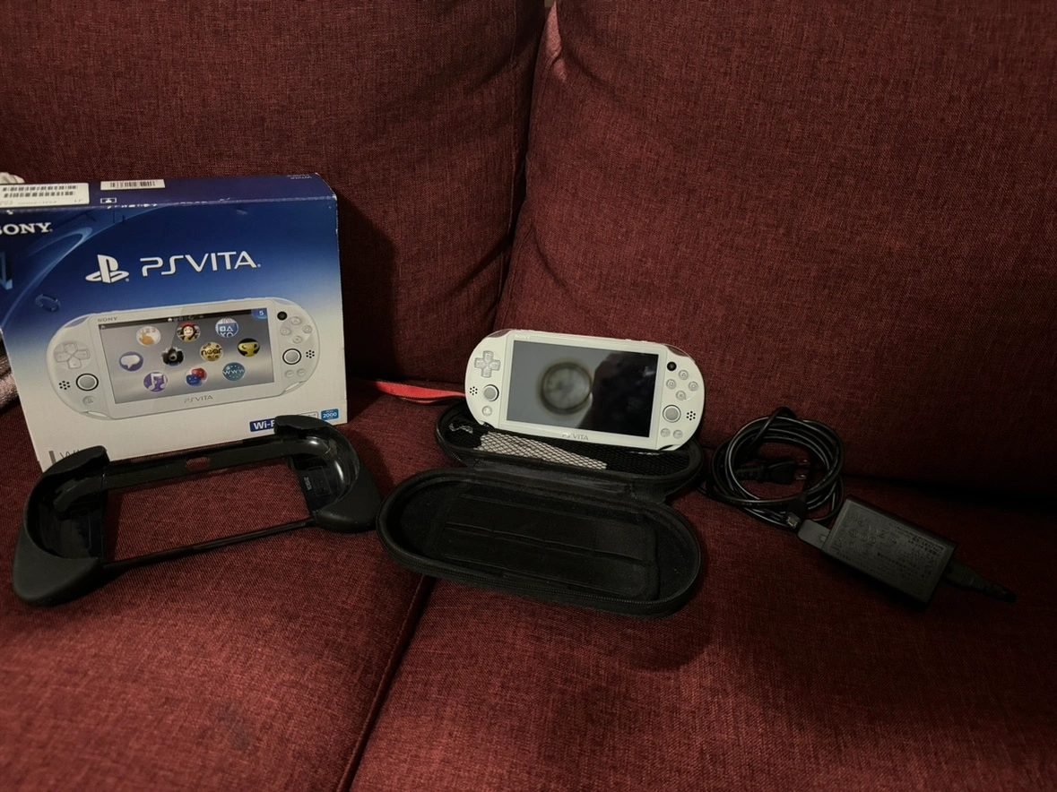 Includes console, charger, case, and grip, and an original 32gb memory card.