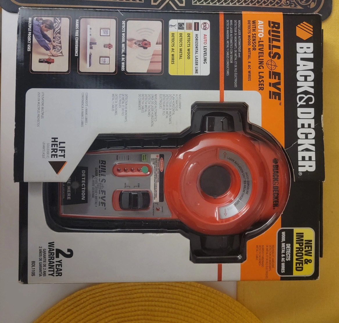 This is a Black & Decker Bullseye Auto-Levelling Laser that can detect wood, metal, and AC wires. It is in new condition, it was never opened.