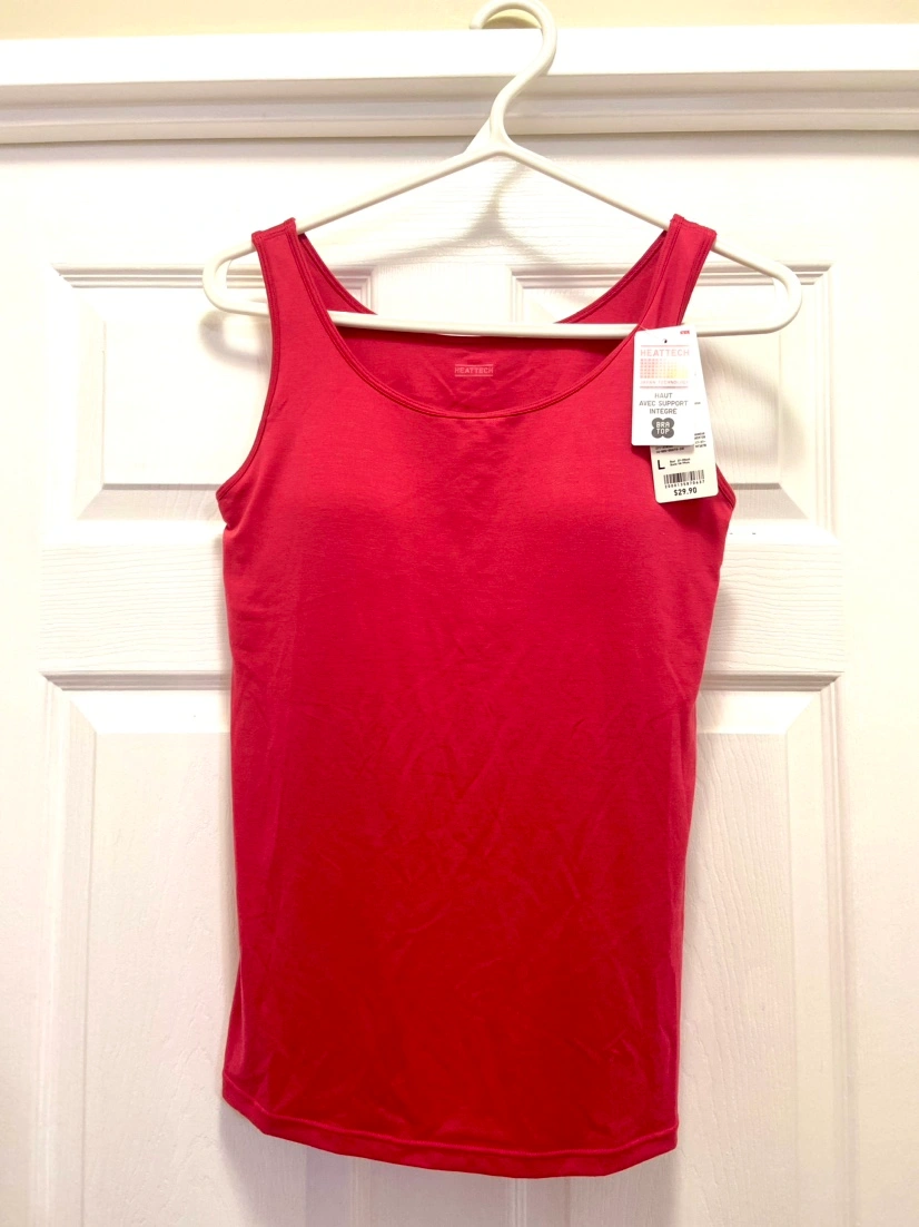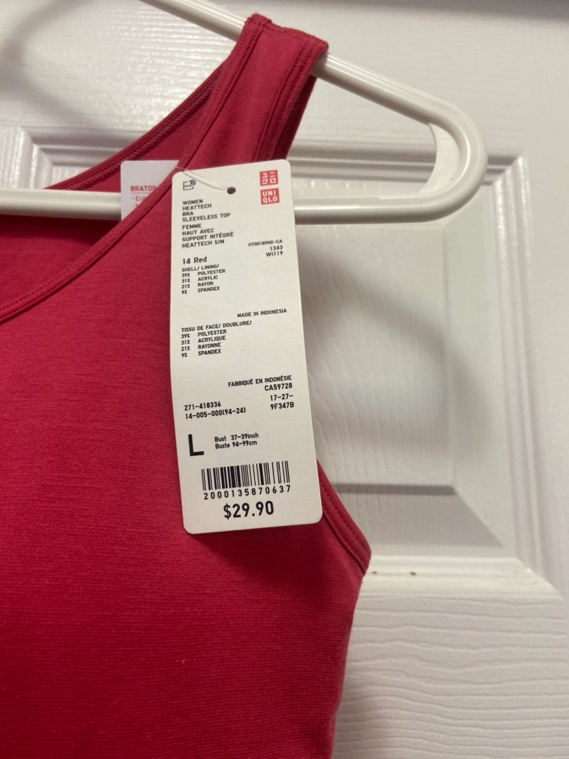 Ref: Sleeveless, Bra, Red top, Uniqlo, Size large, Large, Red.