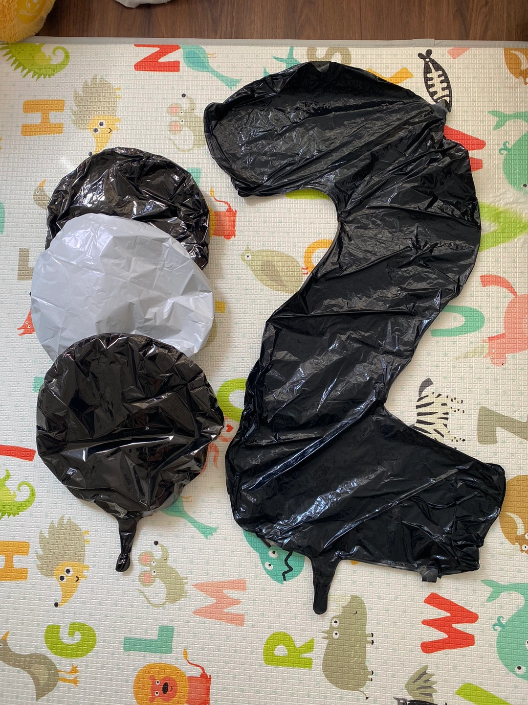One #2 ballon, two black circle balloons and one white circle balloon. Self-sealing and reusable.