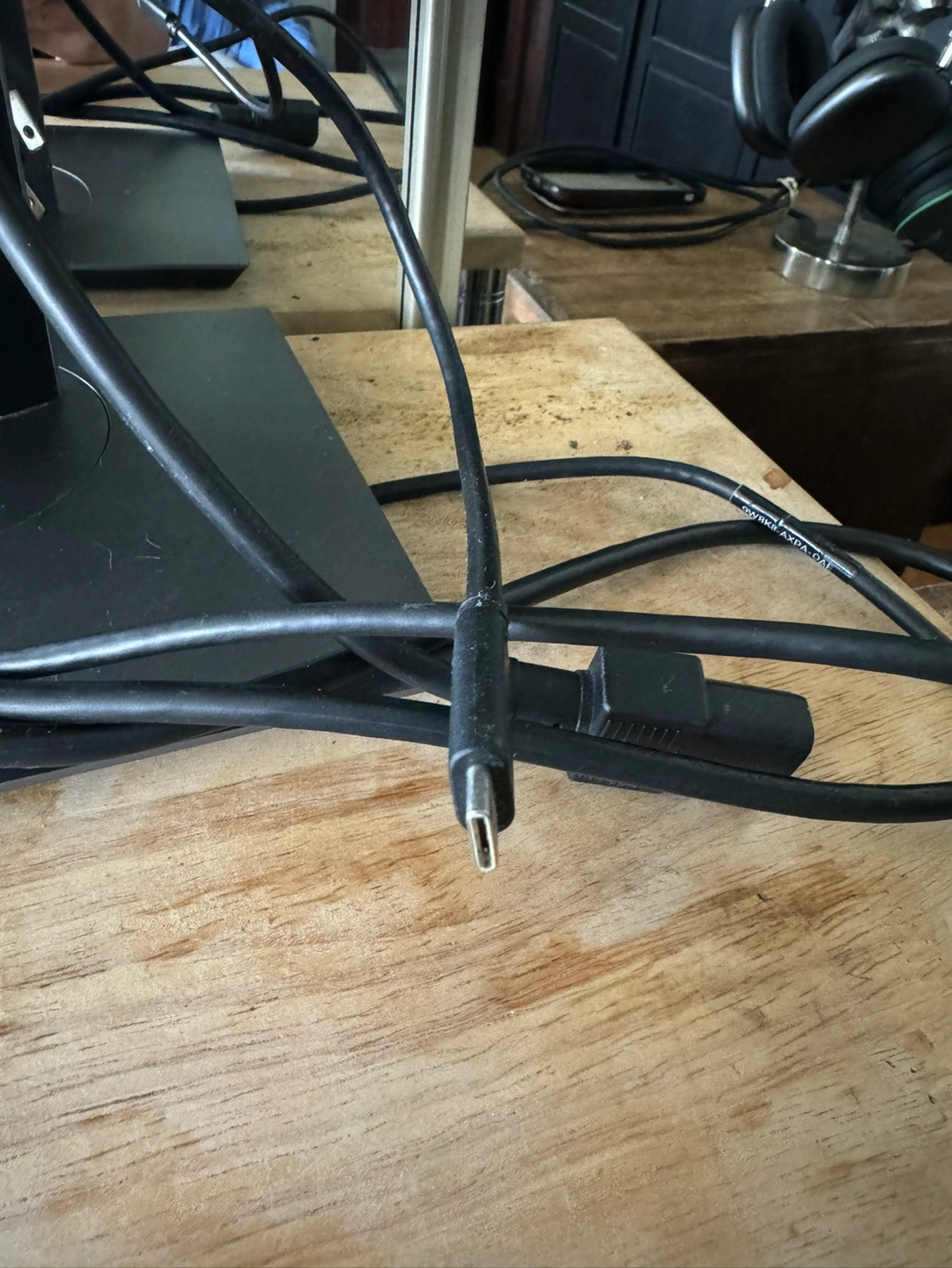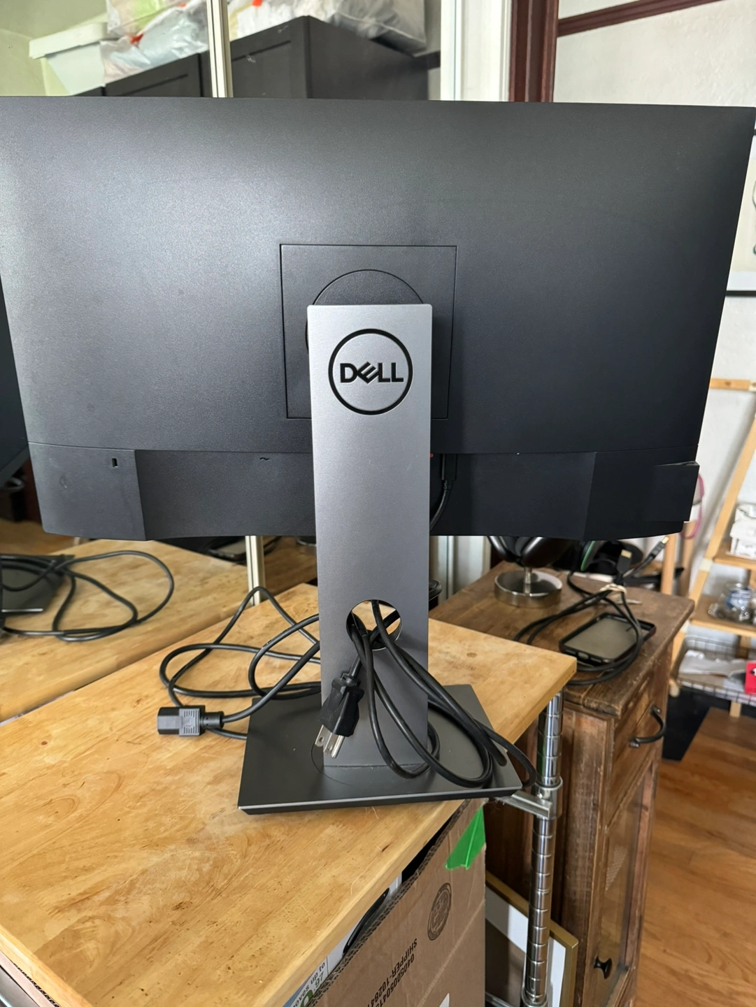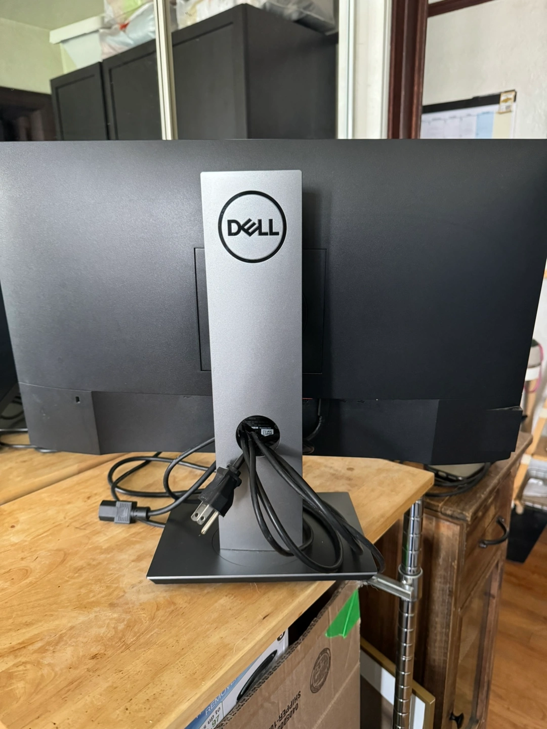 Dell monitor, comes with power cord and HDMI to USB C connection. Works great as a second screen/desktop.