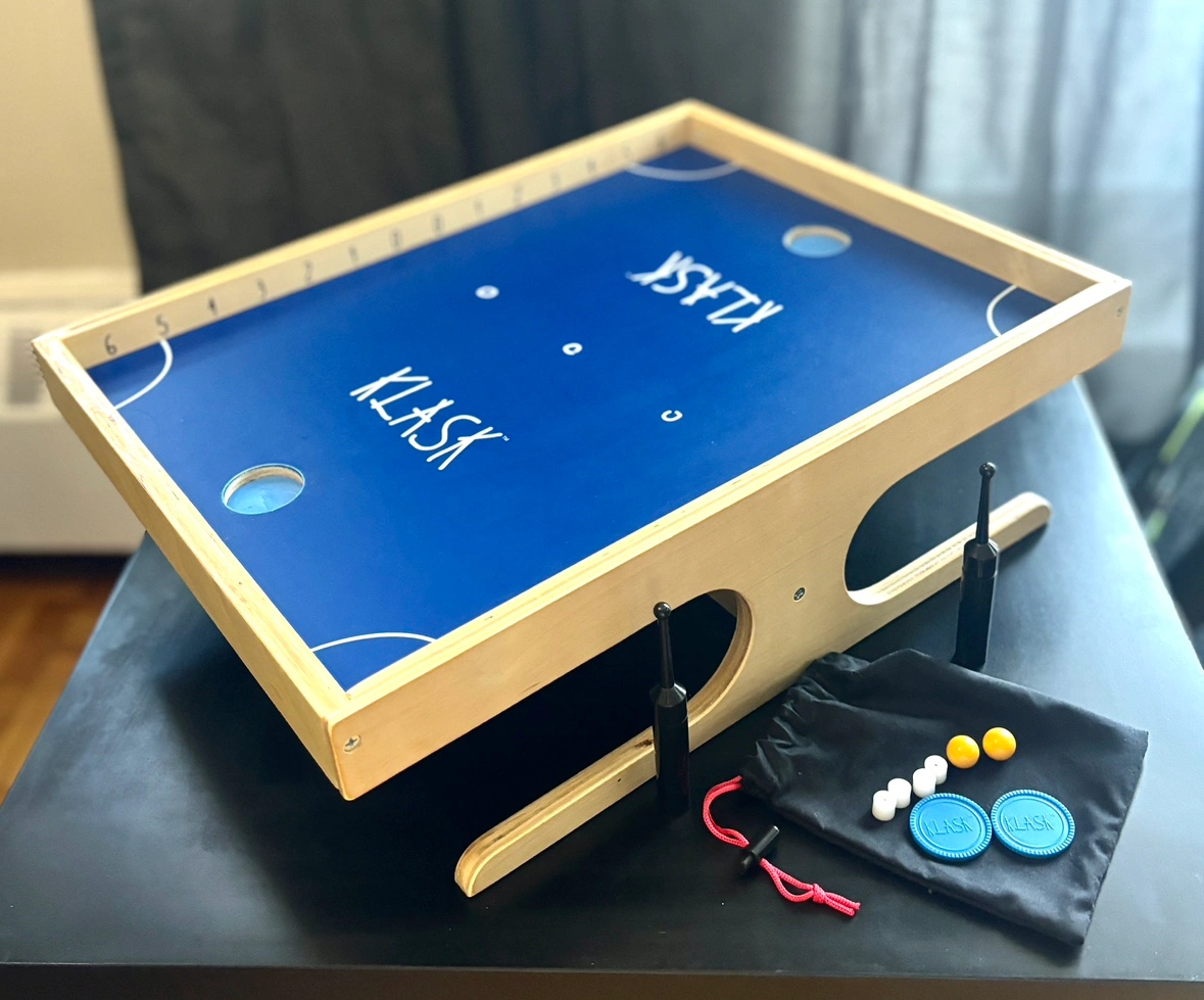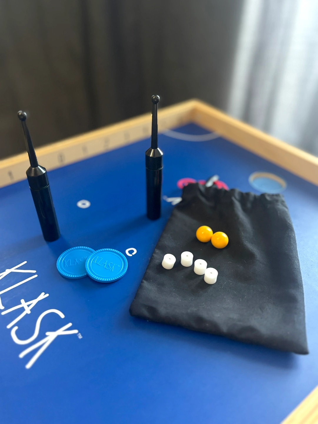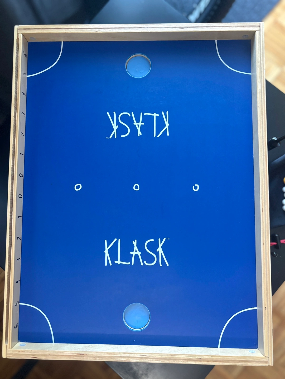Klask is a fast-paced, fun game that combines elements of air hockey and foosball. Perfect for parties, family game nights, or casual play with friends!