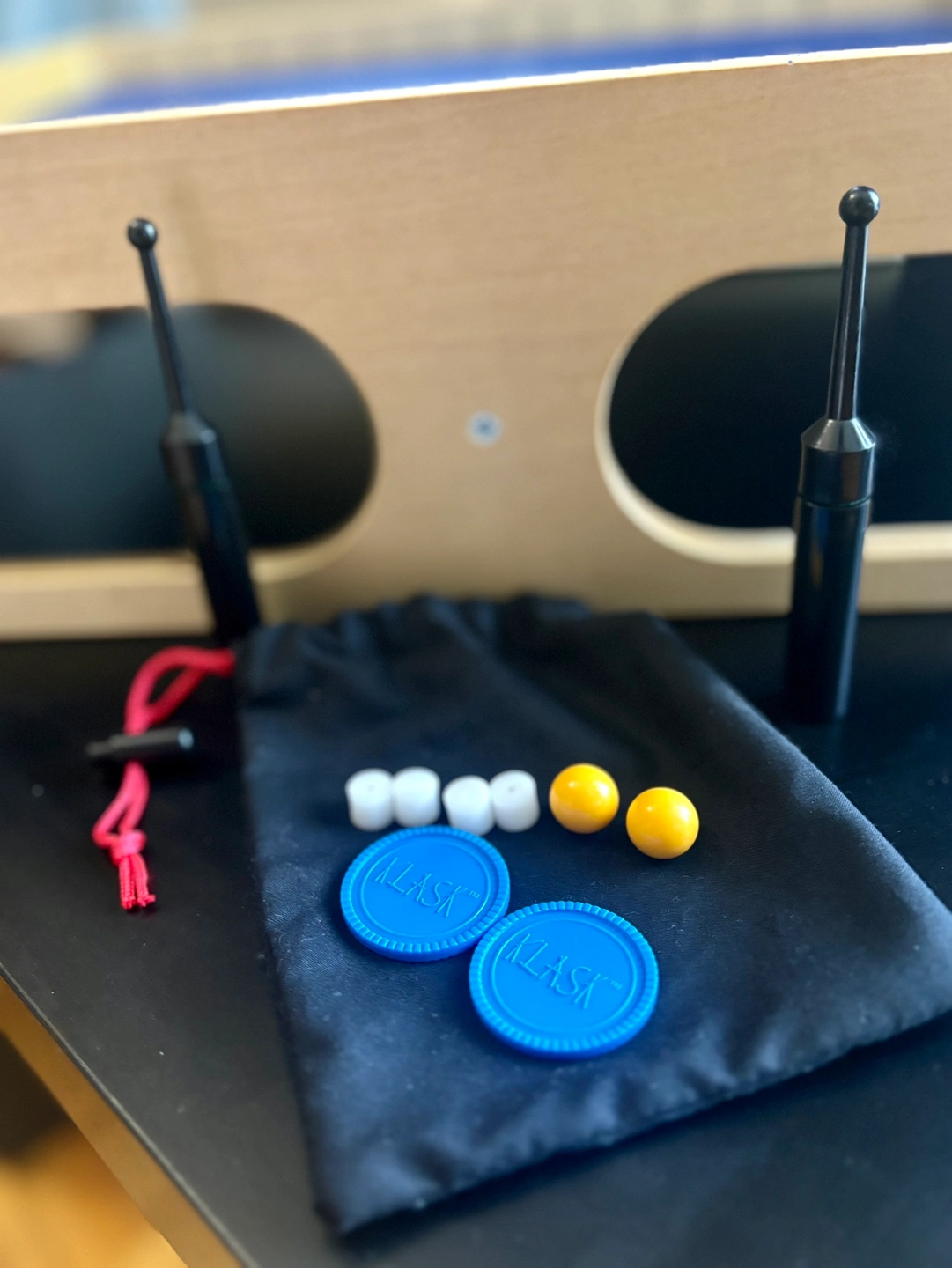Looking to sell a Klask board game (rectangular version) for two players. The game is in excellent condition and comes with all original accessories, including: