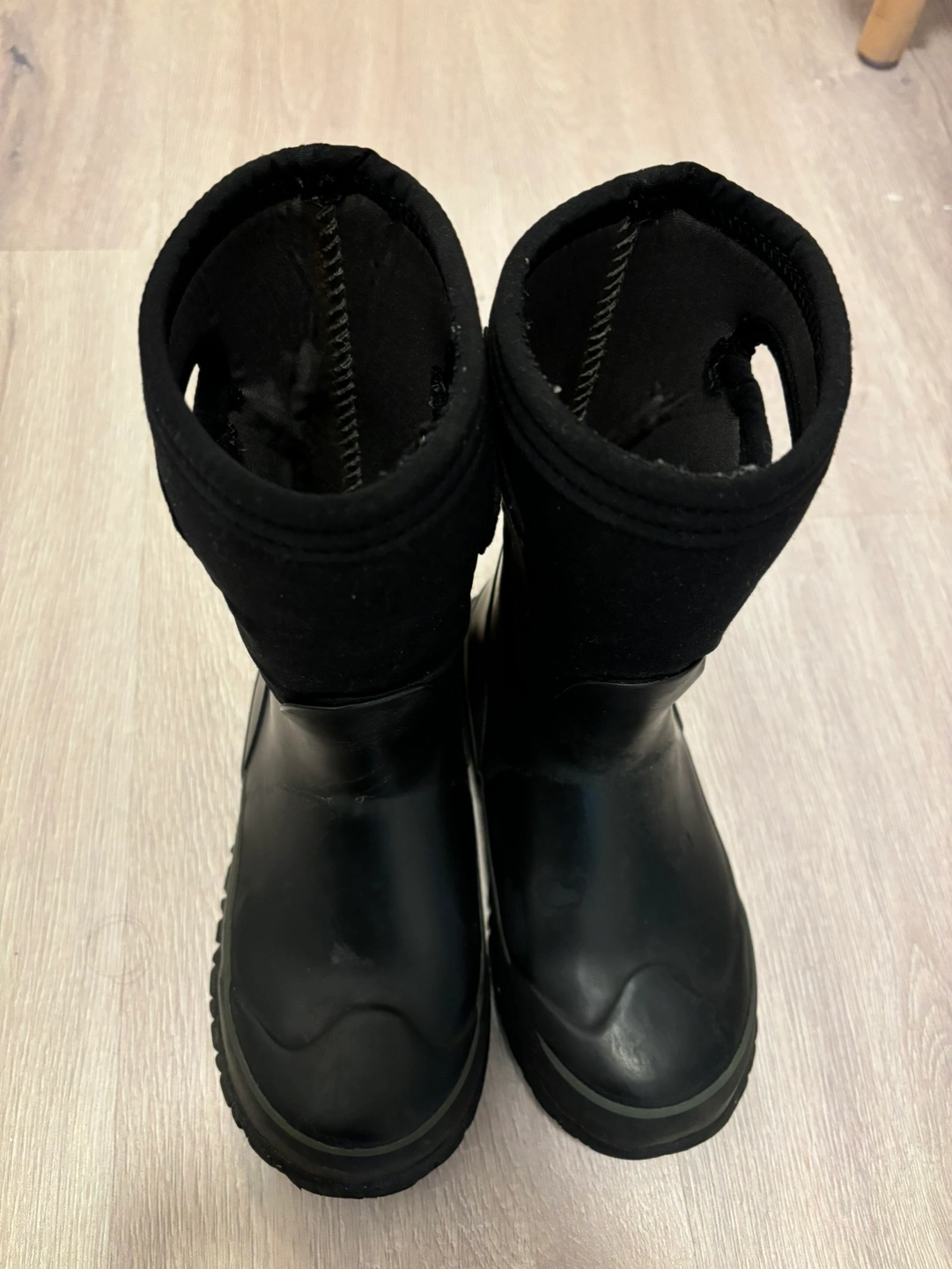 Black winter boots with a fleece lining.
