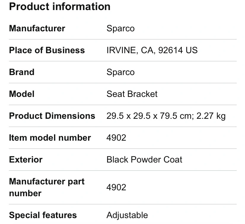 Sparco 4902 universal seat bracket, new with hardware!