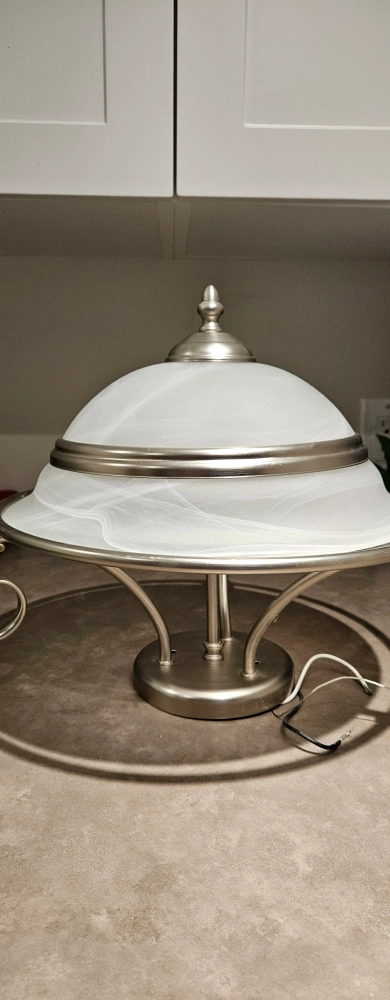 The light fixture is made of silver metal with a frosted glass shade and comes with a wire for installation.