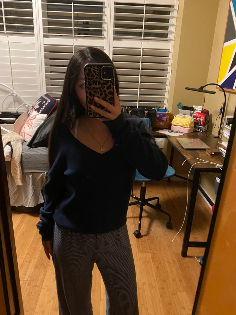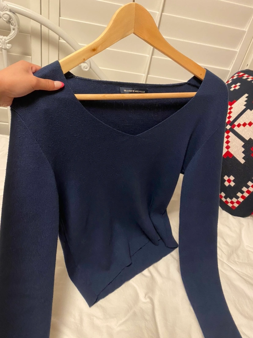 Brandy navy sweater Goes with everything Size:xs-s Love this so much but is a bit big Retails:$50 something Selling:$45