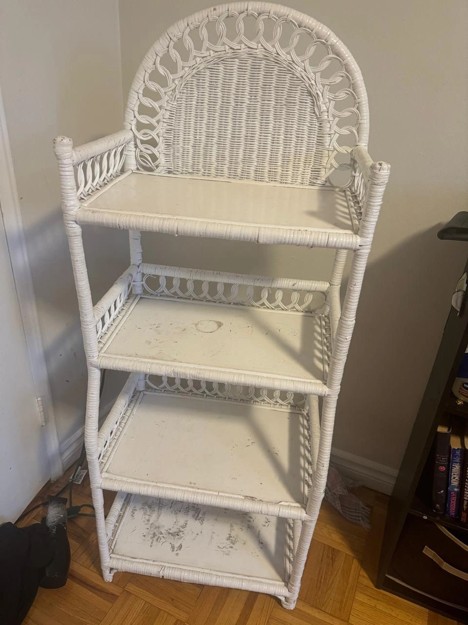 Buy & SellWhite Wicker ShelfWhite Wicker Shelf$10Moving out sale A white wicker shelf with four shelves. It has a unique arched top. Pickup onlyWHERE TO MEETCheck LocationView MapSELLERKdScarborough Village272 reviews0 chats·0 favorites·29 viewsSEND CHAT TO SELLERHi Kd! I’m interested in your listing.Hi Kd! I’m interested in your listing.Get the Karrot app to chatSign In to chat