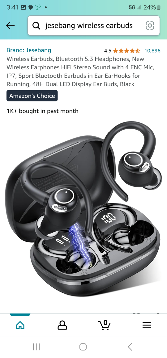 Wireless Earbuds, Bluetooth 5.3 Headphones, New Wireless Earphones HiFi Stereo Sound with 4 ENC Mic, IP7, Sport Bluetooth Earbuds in Ear EarHooks for Running, 48H Dual LED Display Ear Buds, Black