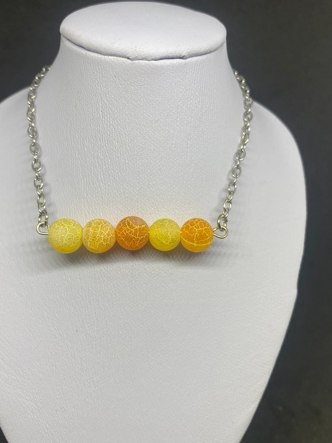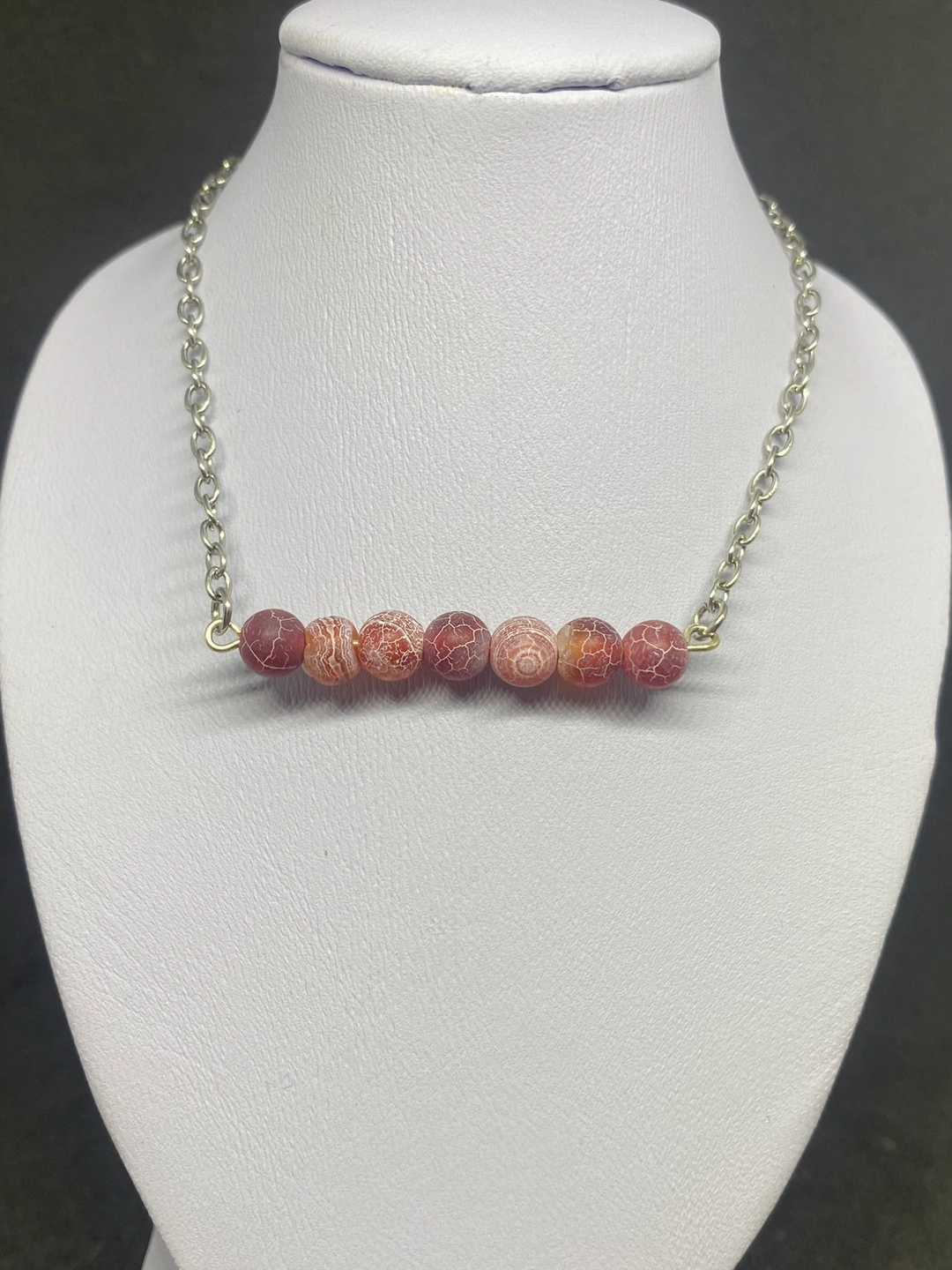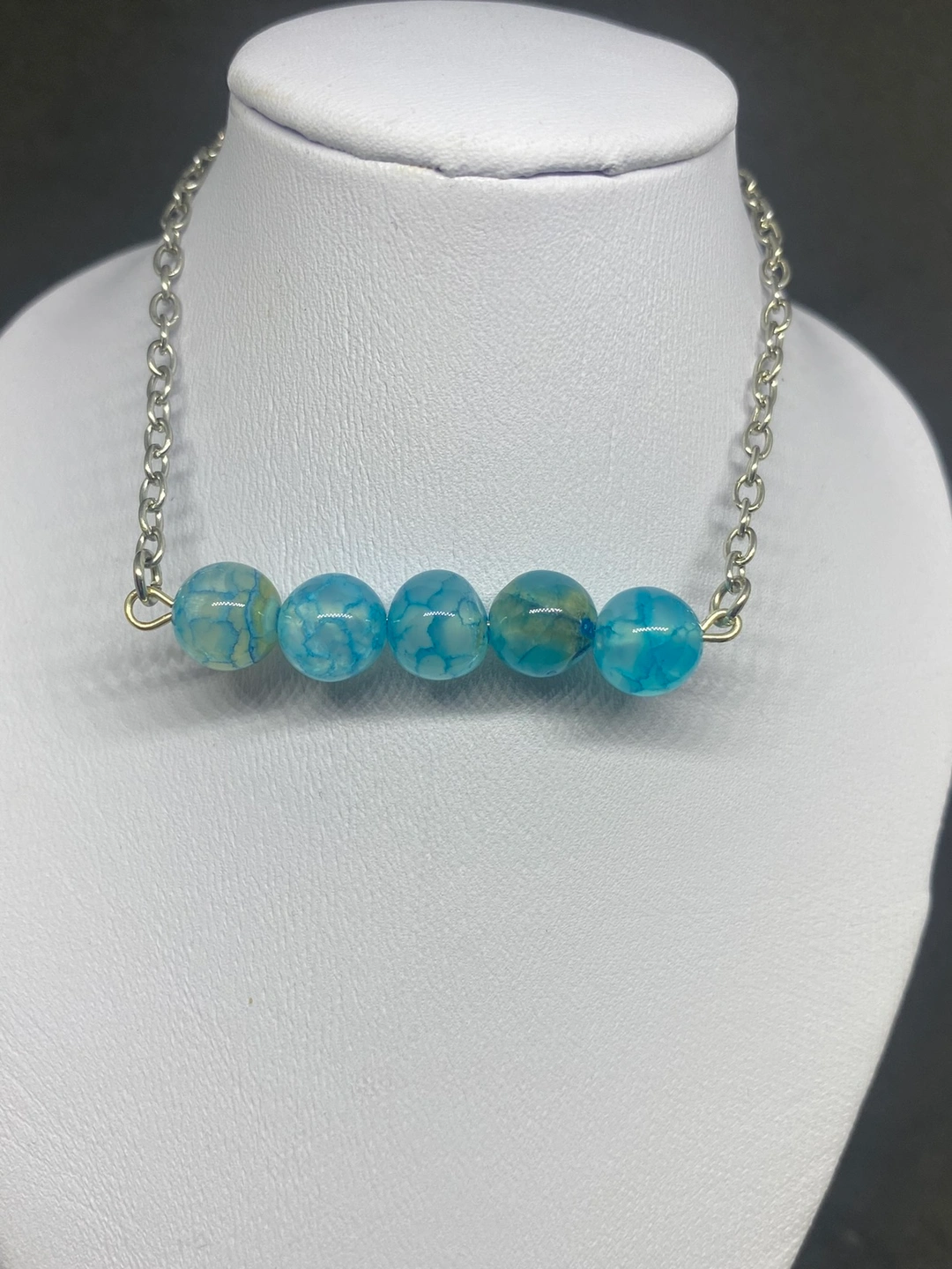 Five dragon vein stone beads strung on a silver chain. Product is handmade and can be customized! Message me for more details