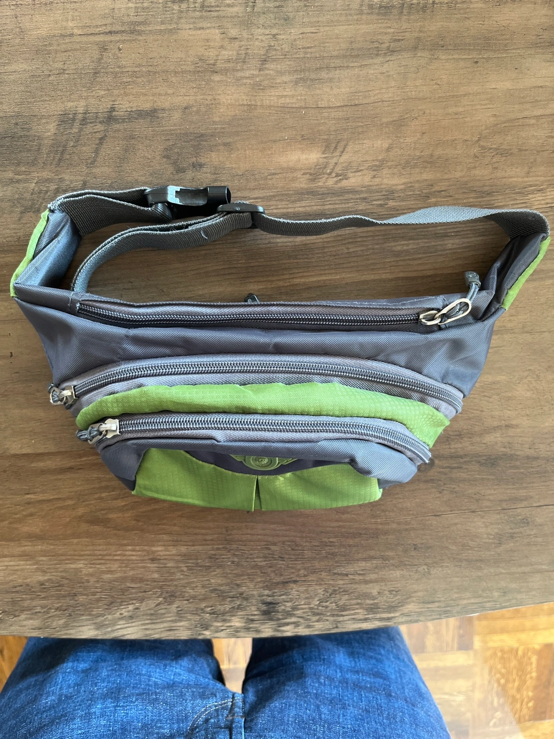This fanny pack is great for carrying your essentials while travelling, going for a run, or just running errands! It is made of a durable, water-resistant material and features three zippered pockets for storage.